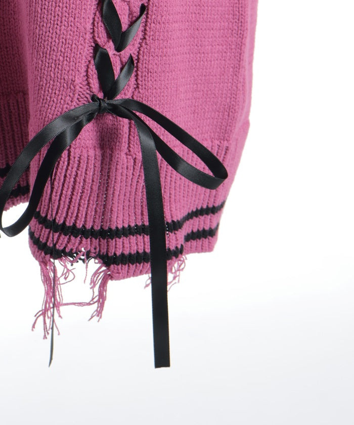 The distressed finish and lace-up detailing give it a sharp, edgy feel.