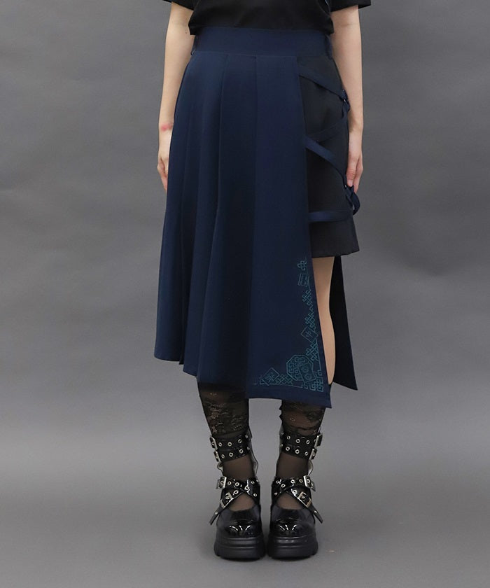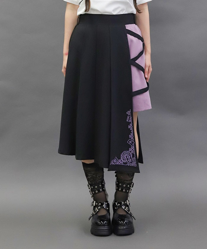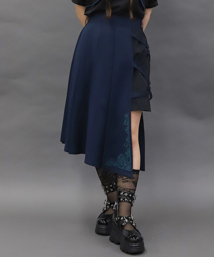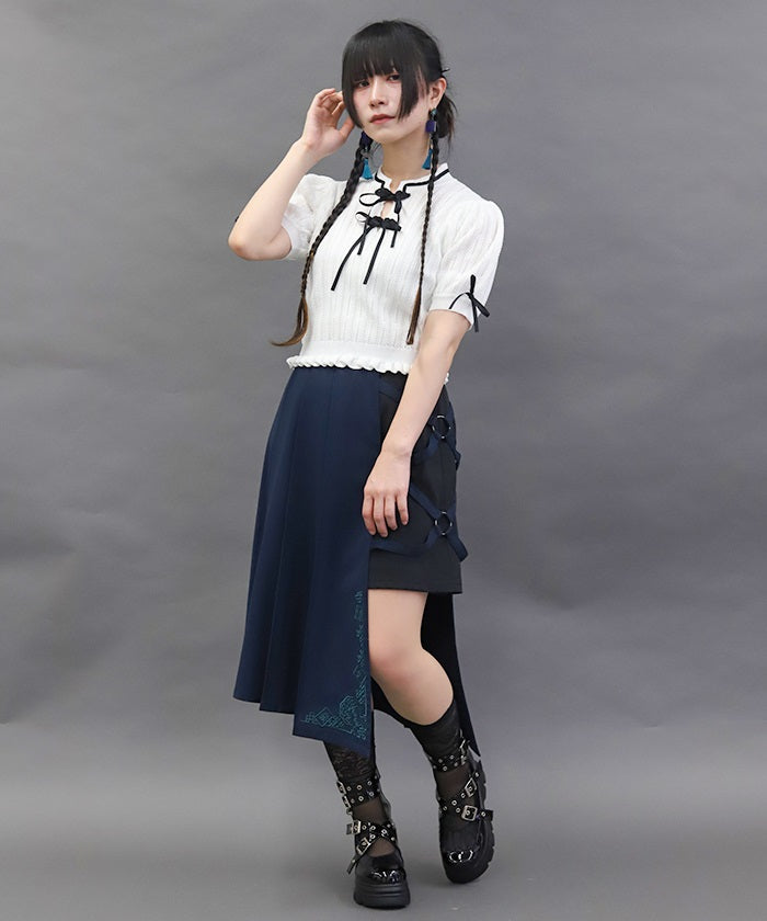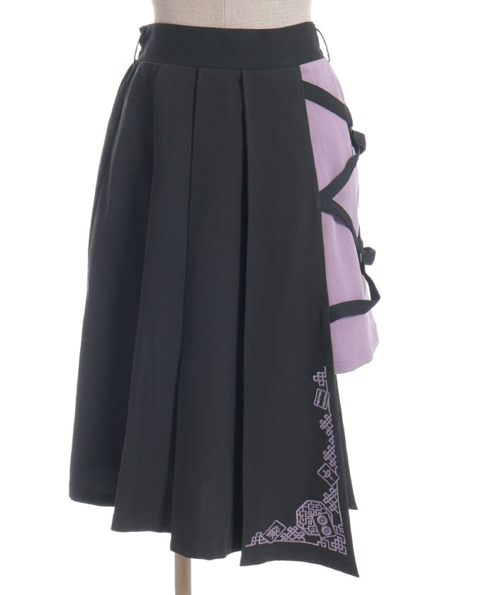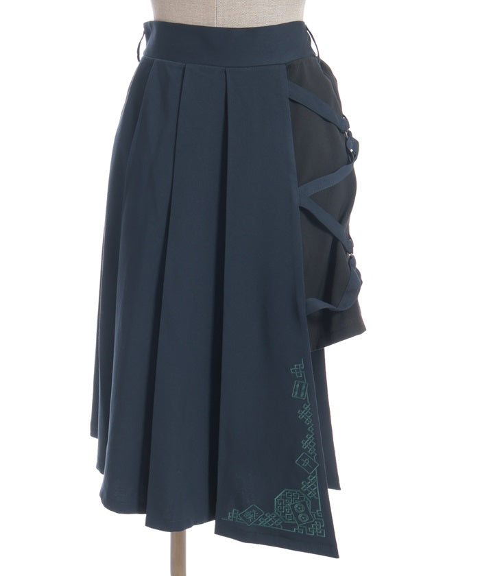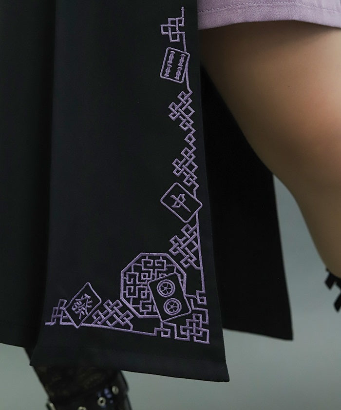 This skirt features mahjong tiles as embroidery motifs.