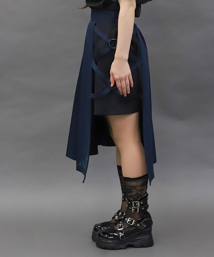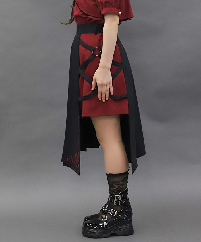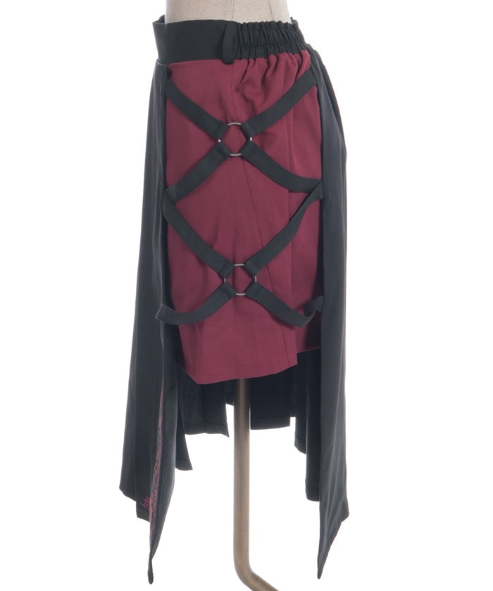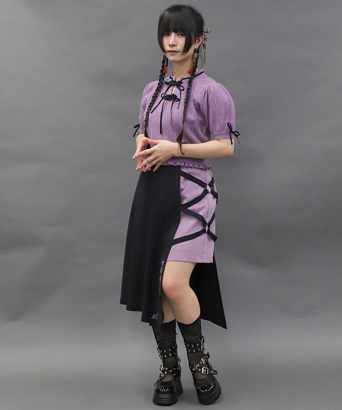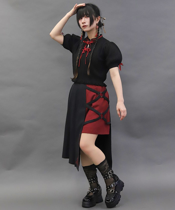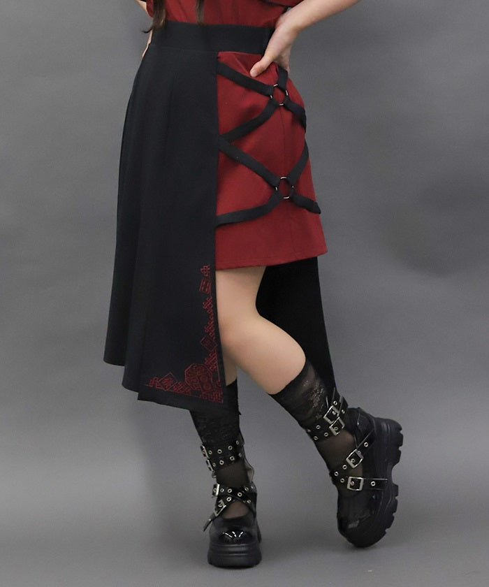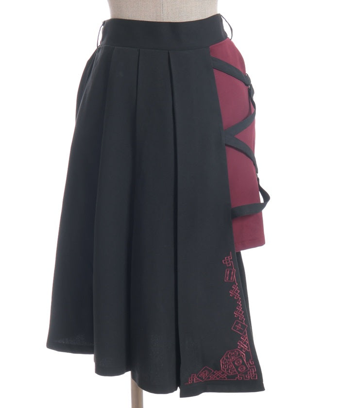 This skirt features mahjong tiles as embroidery motifs.