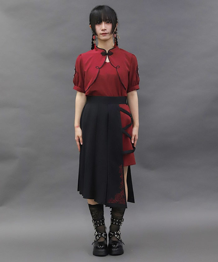 We also recommend pairing this with the Mahjong Tiles Embroidery Blouse.
