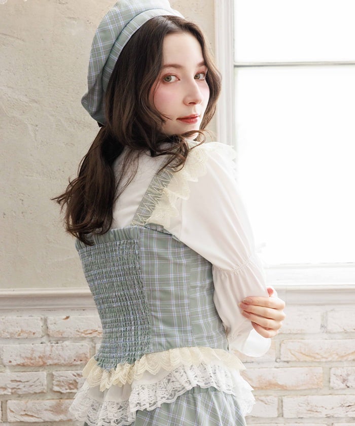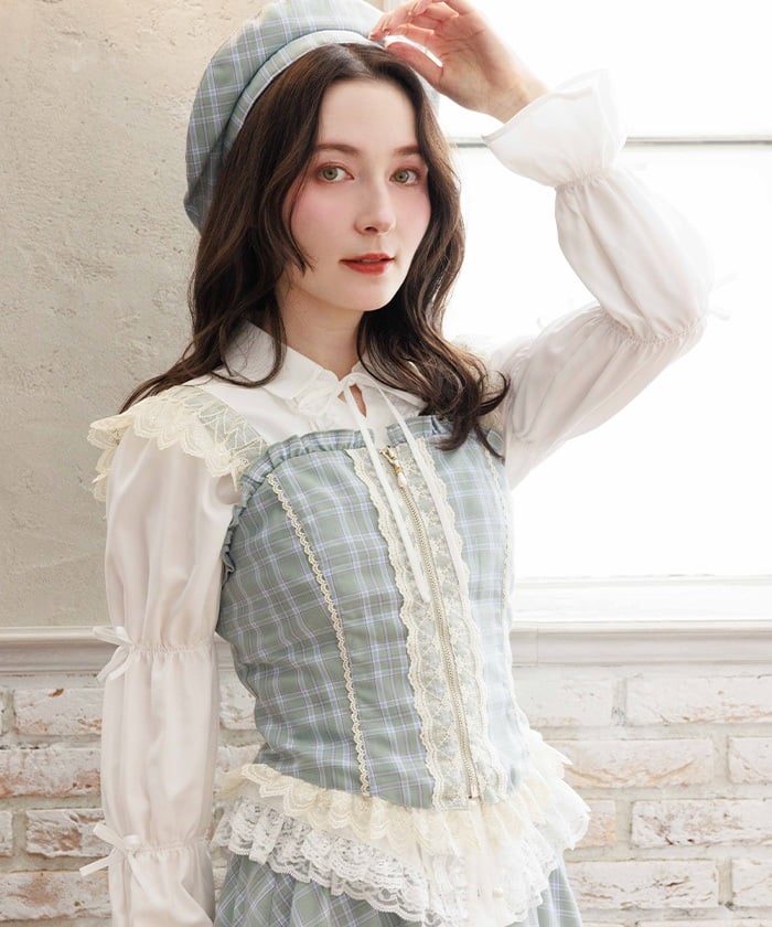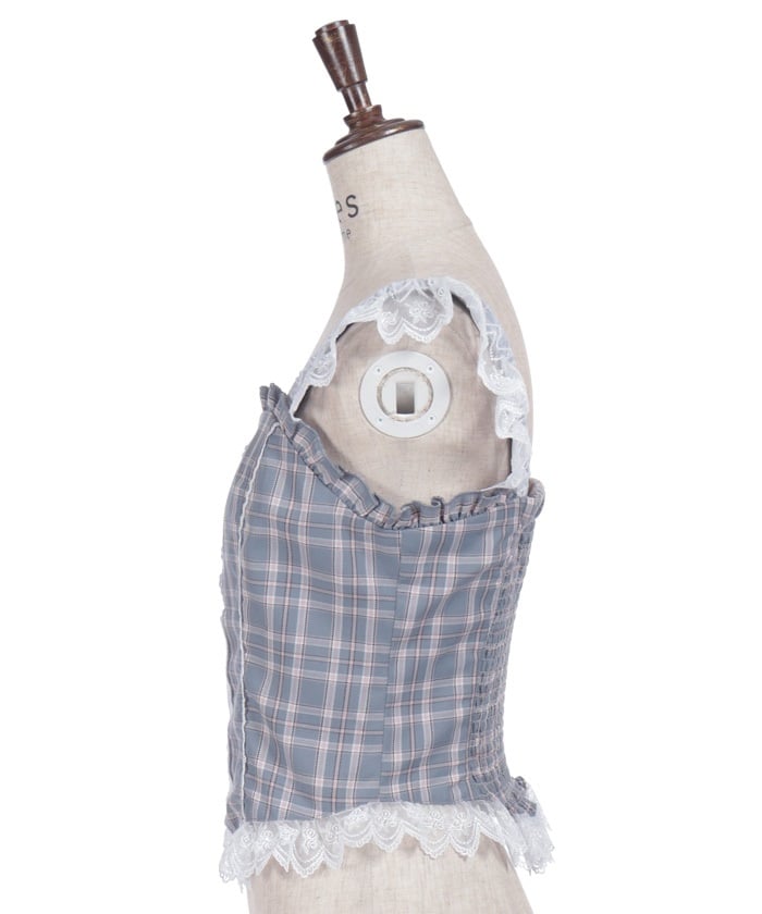 A bustier boasting an eye-catching original check pattern, letting you enjoy a classical mood.