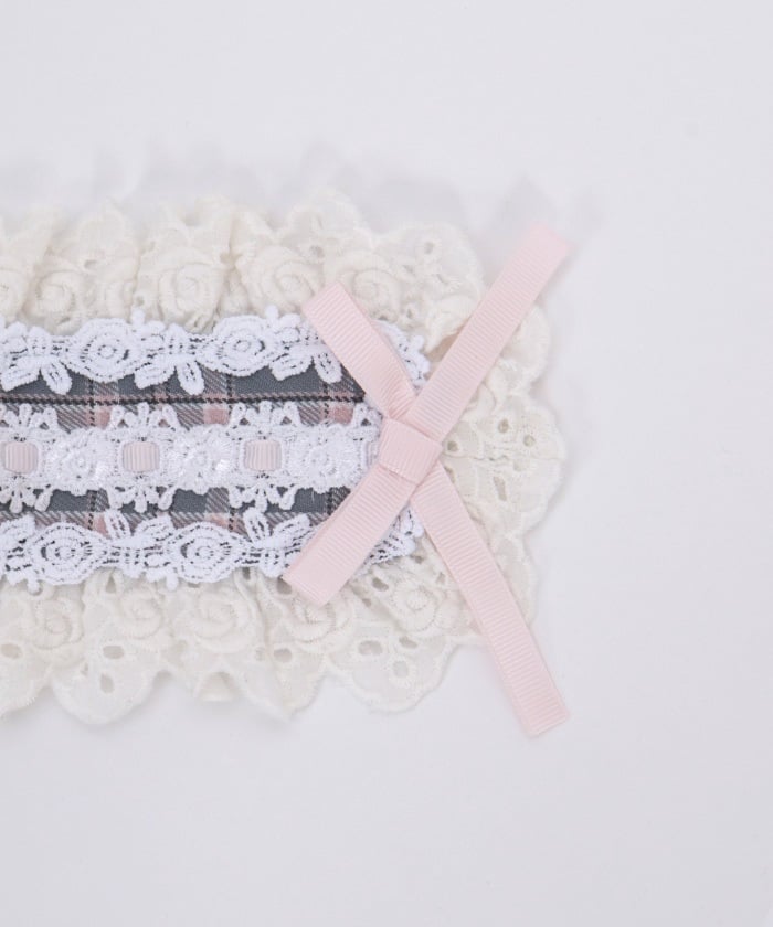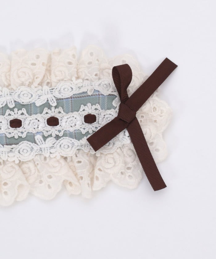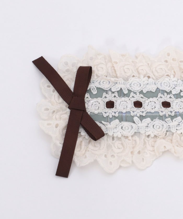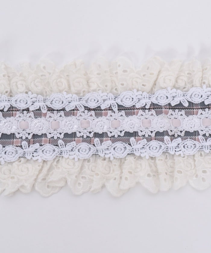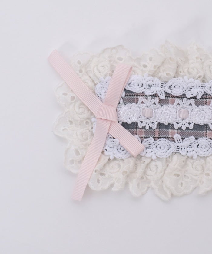 A headdress with lace frill accents, boasting an eye-catching original check pattern.