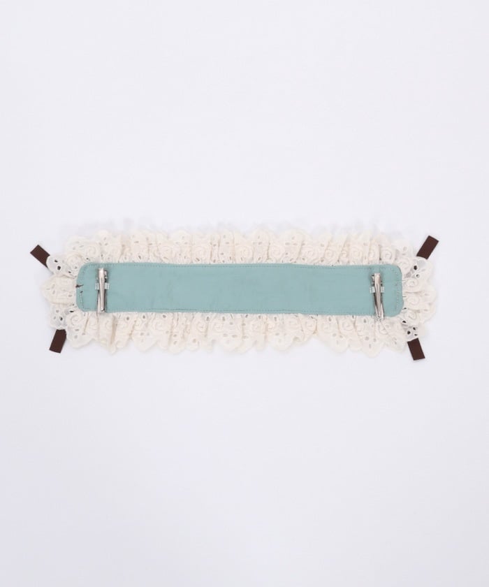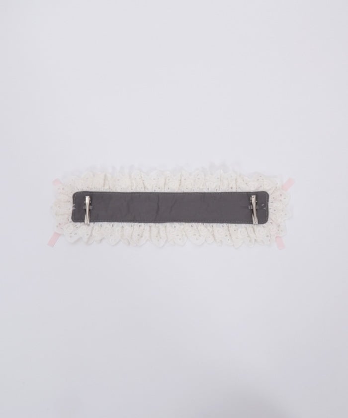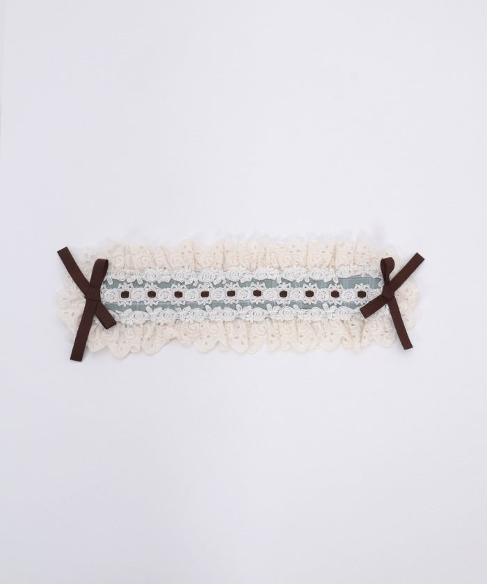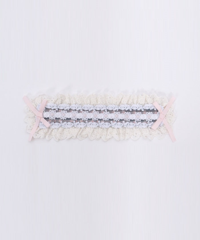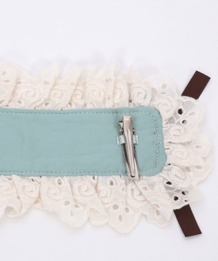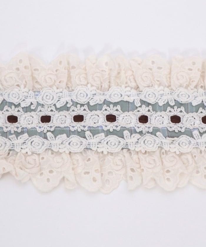 A headdress with lace frill accents, boasting an eye-catching original check pattern.
