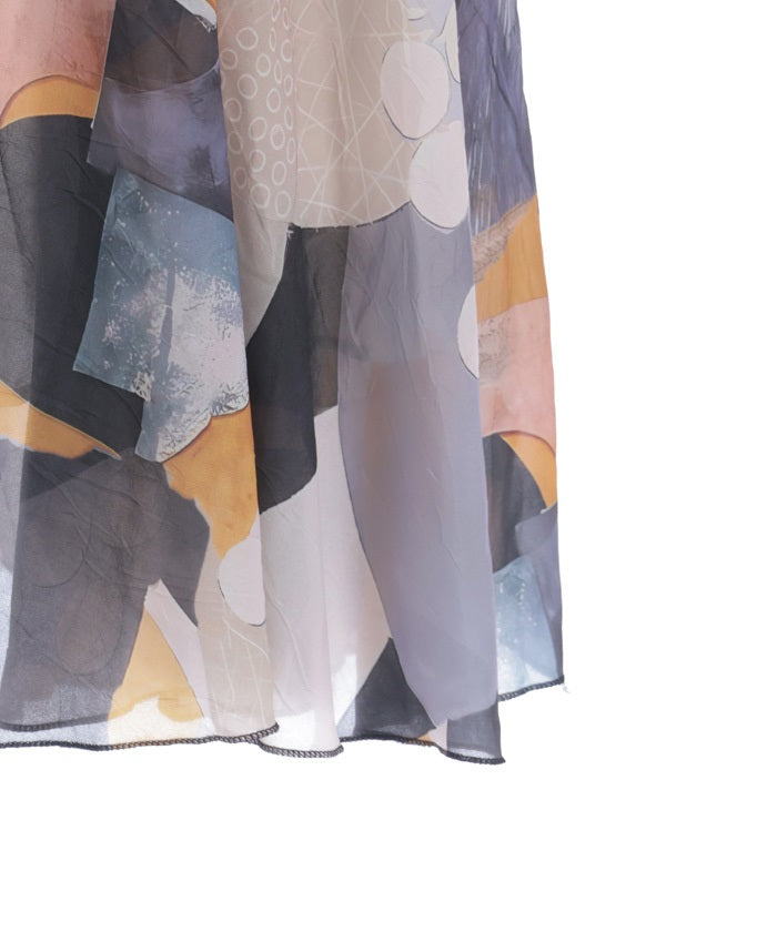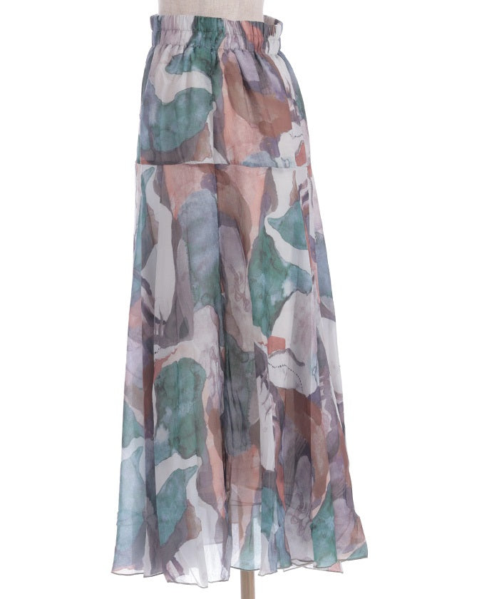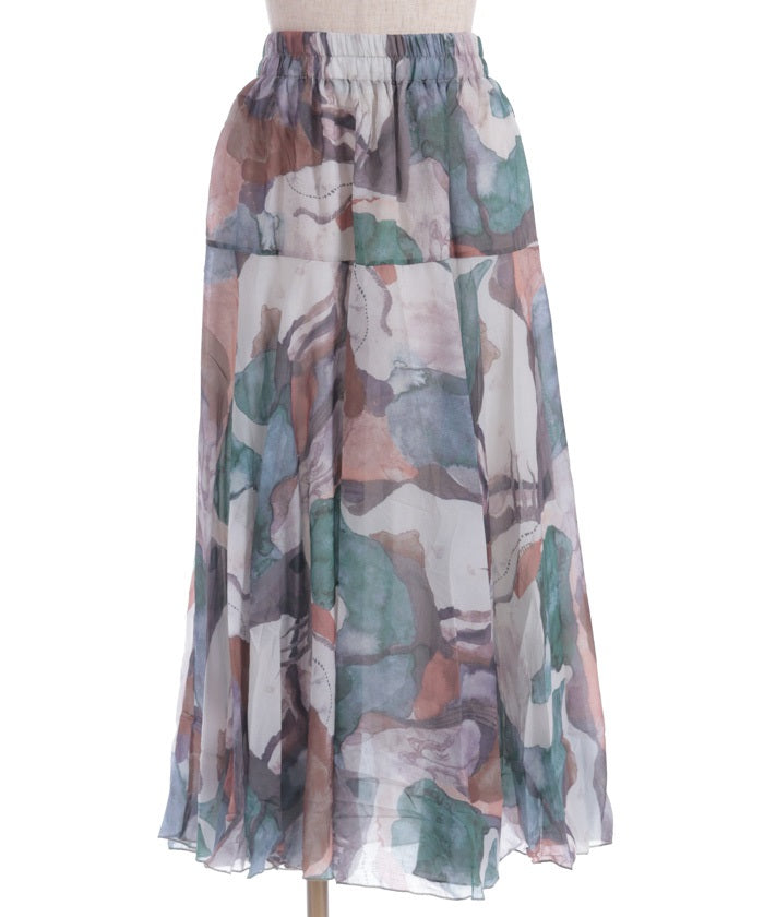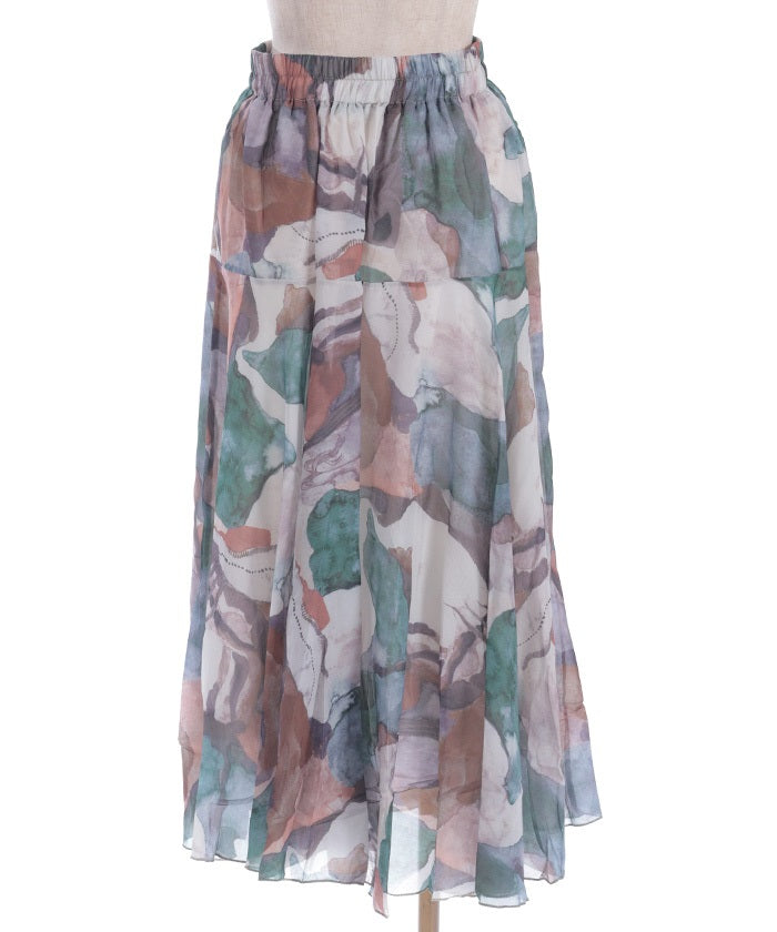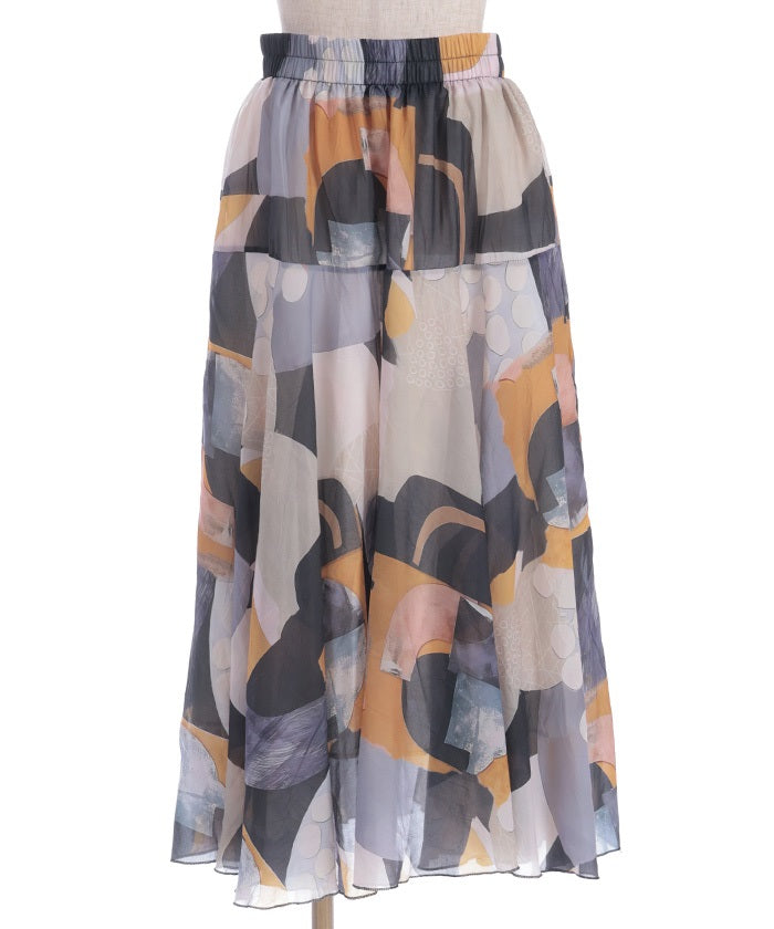 Overall Pattern Flare Skirt