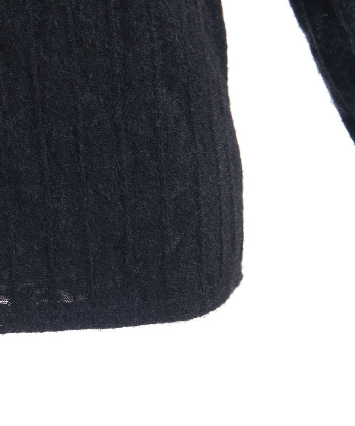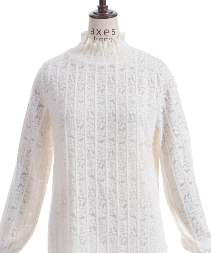 This soft-looking pullover features brushed striped fabric layered with delicate floral lace. The soft, seasonal texture creates a feminine look. It's soft against the skin, making it perfect for everyday wear.