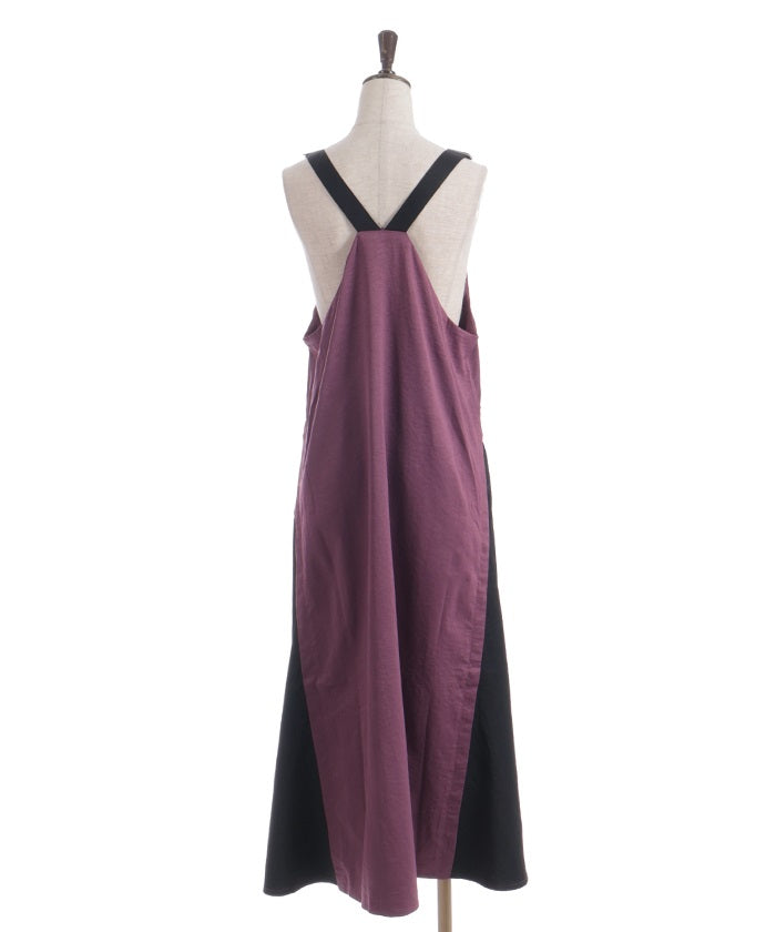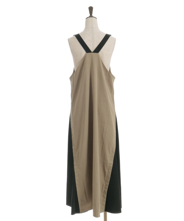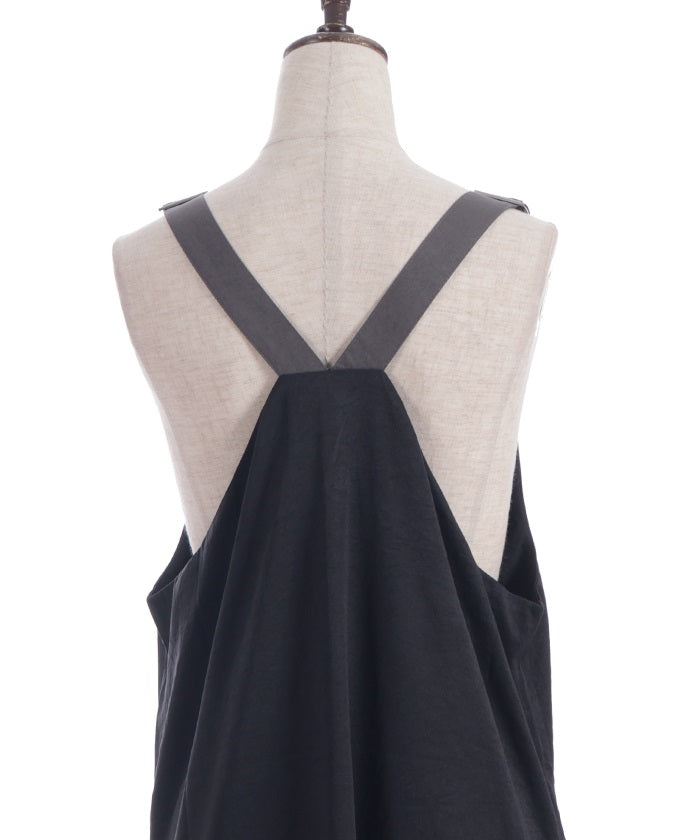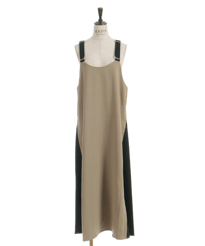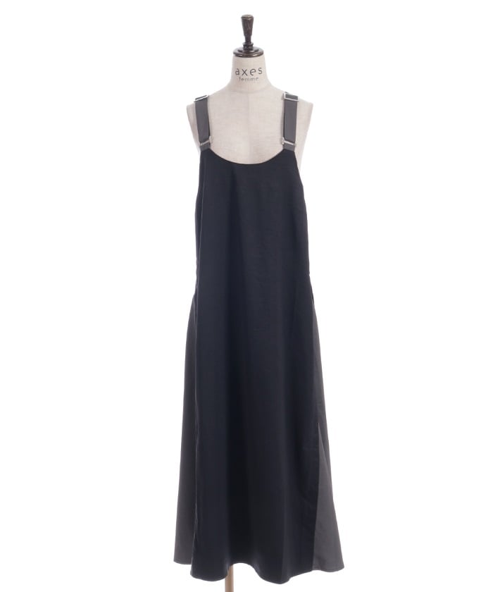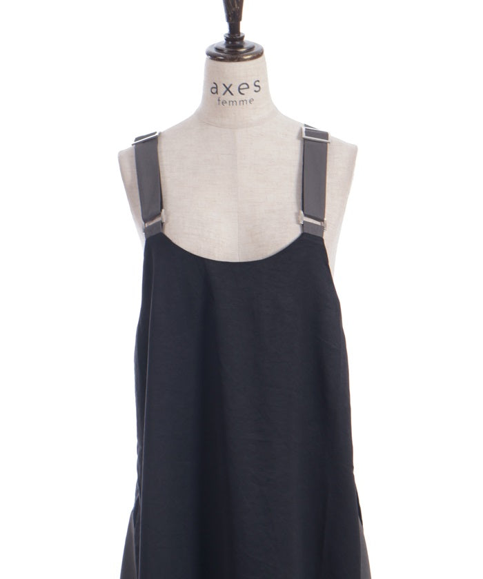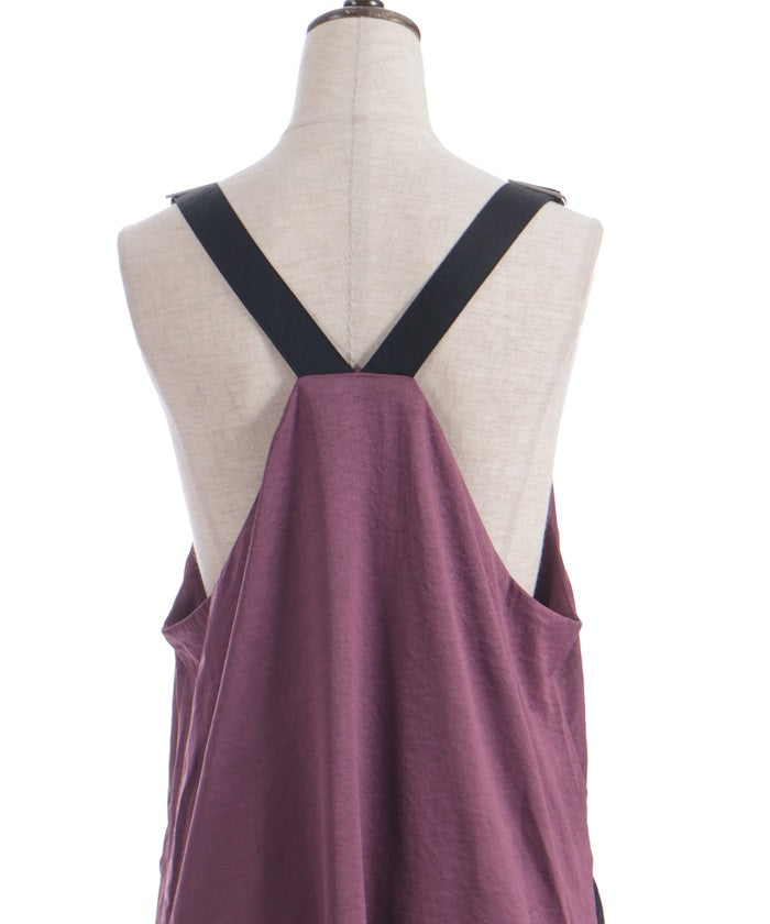 This jumper skirt's striking shoulder straps and two-tone design are sure to catch your eye. The relaxed, flowing silhouette maintains a soft, feminine feel, while its sophisticated design makes it a statement piece that stands out on its own.