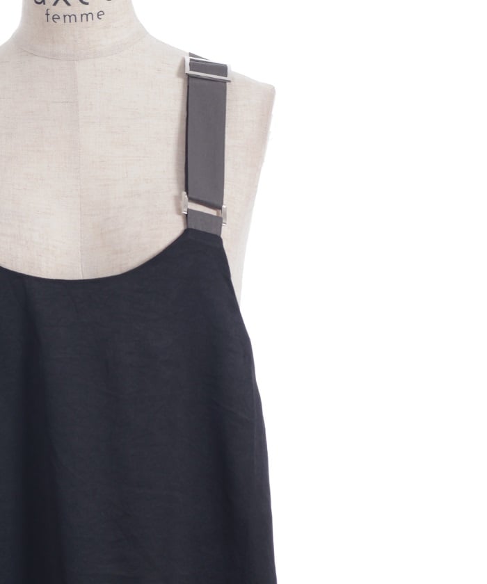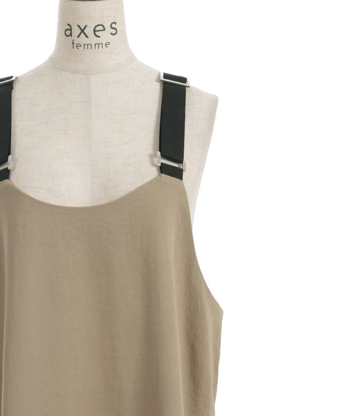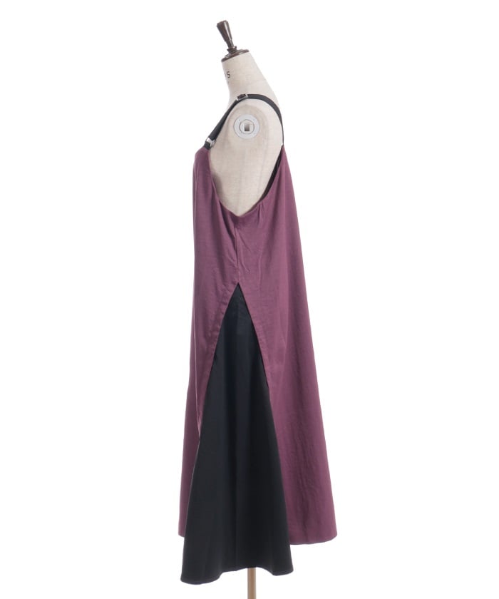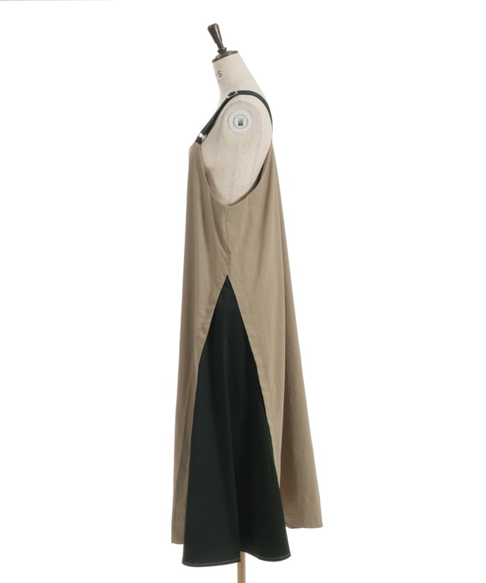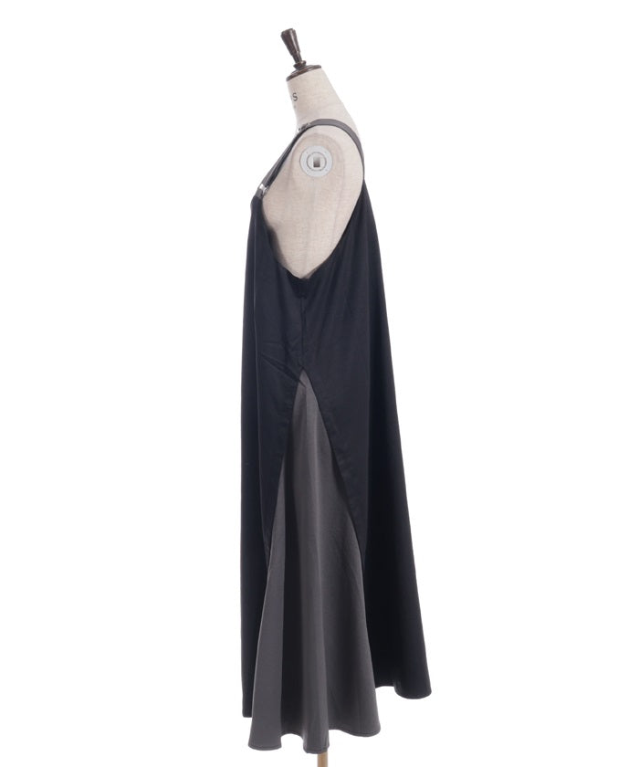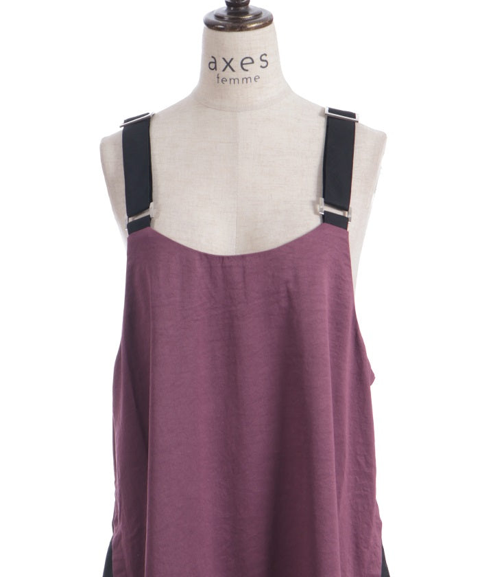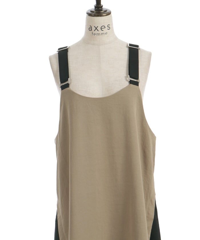 This jumper skirt's striking shoulder straps and two-tone design are sure to catch your eye. The relaxed, flowing silhouette maintains a soft, feminine feel, while its sophisticated design makes it a statement piece that stands out on its own.