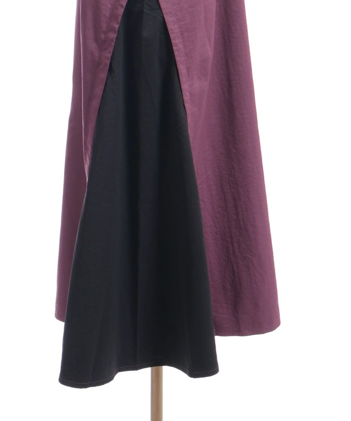 The metal accents on the shoulder straps add a classic touch, while the drawstring design on the front and back creates a three-dimensional silhouette. The two-tone paneling creates a streamlined look, and the silhouette sways softly with every movement, making this a charming piece.