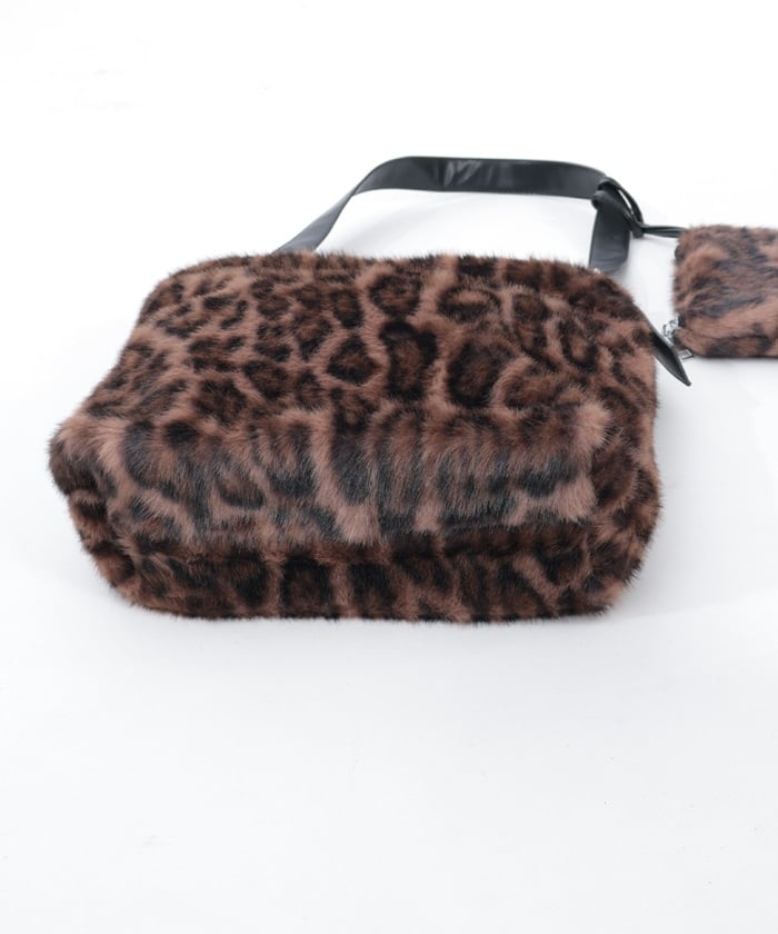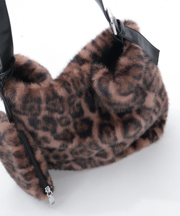 This leopard-print fur bag exudes a luxurious feel with its soft, fluffy texture. It's a striking everyday bag, yet lightweight and easy to carry. It comes with a convenient mini pouch, making it a great value for two-way use.