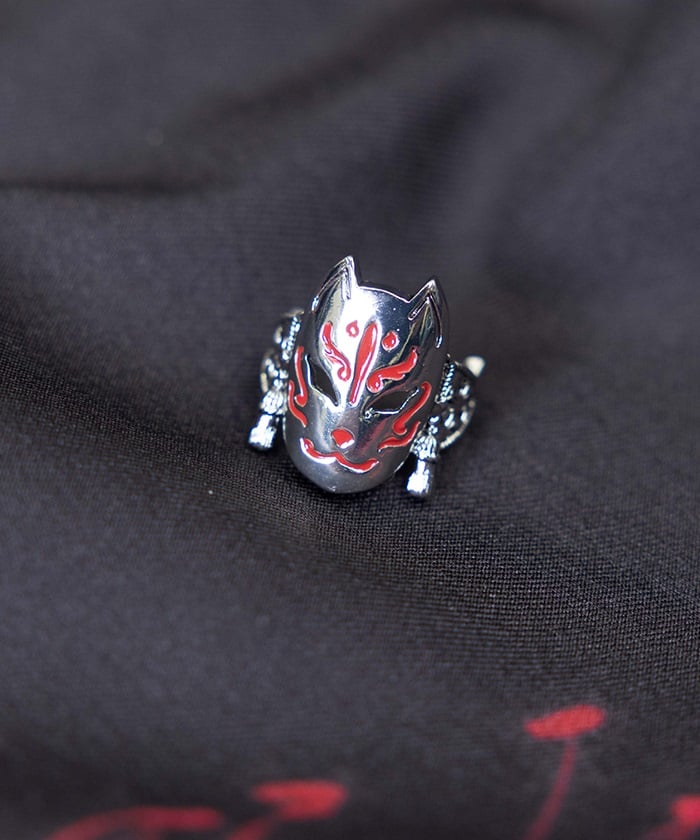 The main focus is on the alluring fox mask, with added details of the hemp leaf pattern.