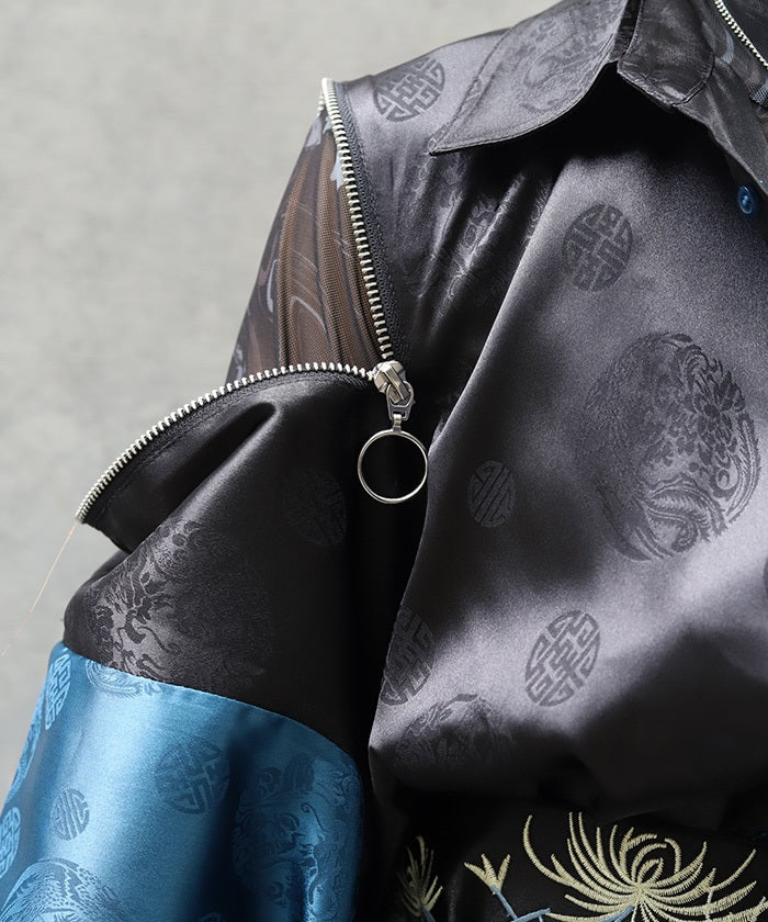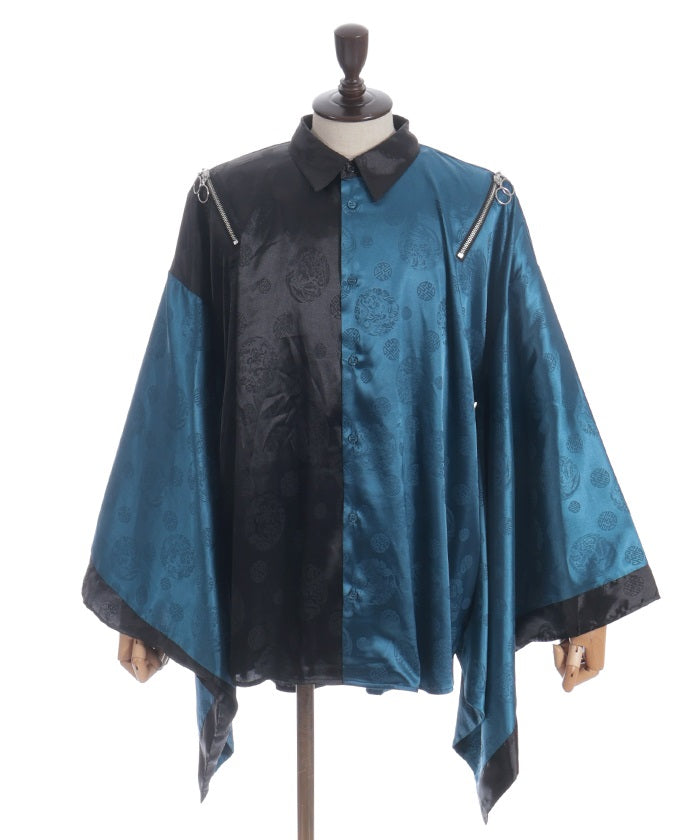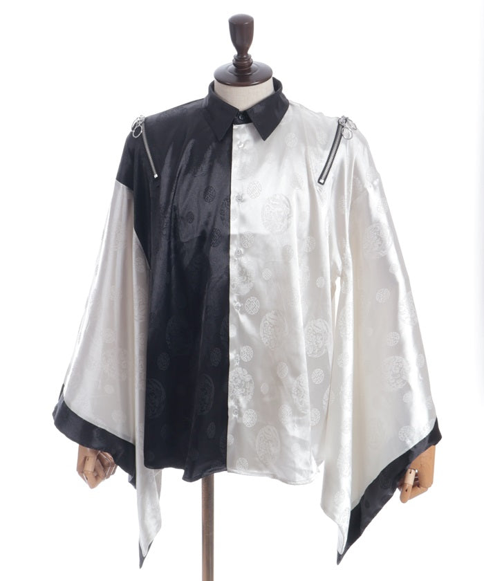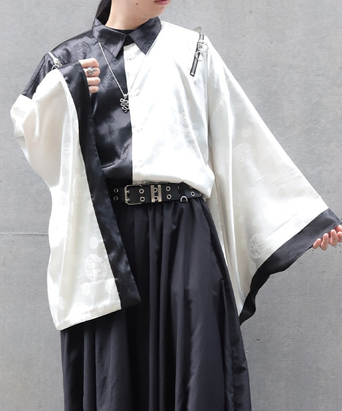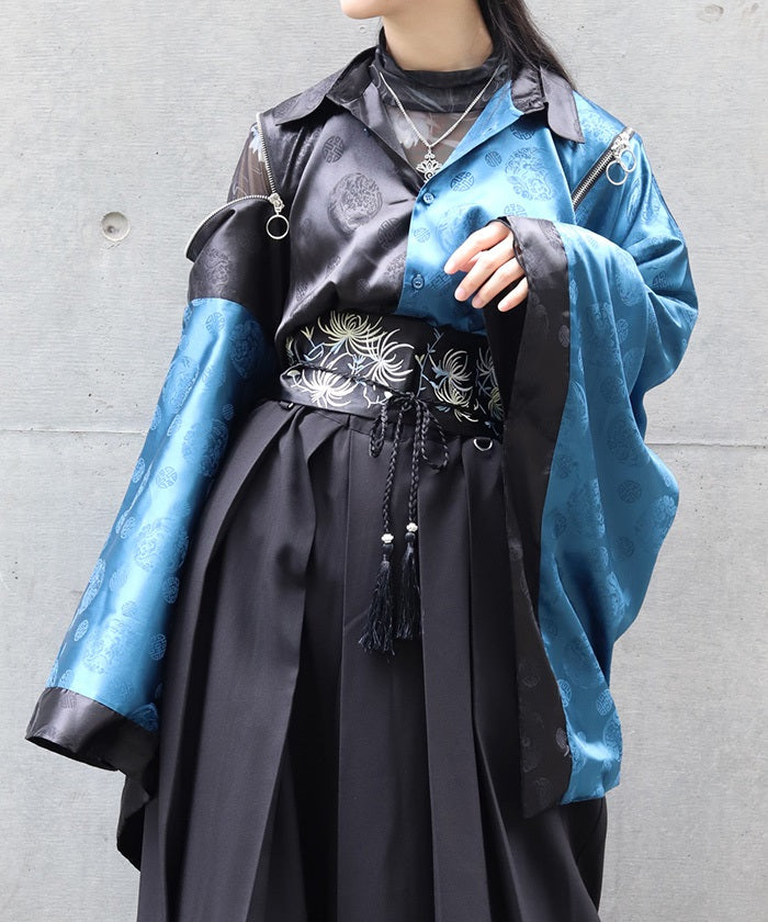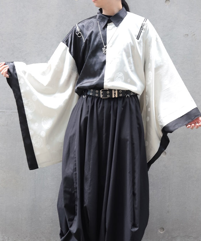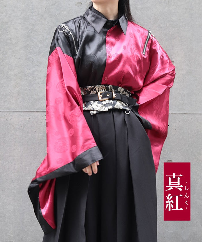 A kimono-sleeved shirt exuding a Japanese-Western fusion atmosphere.