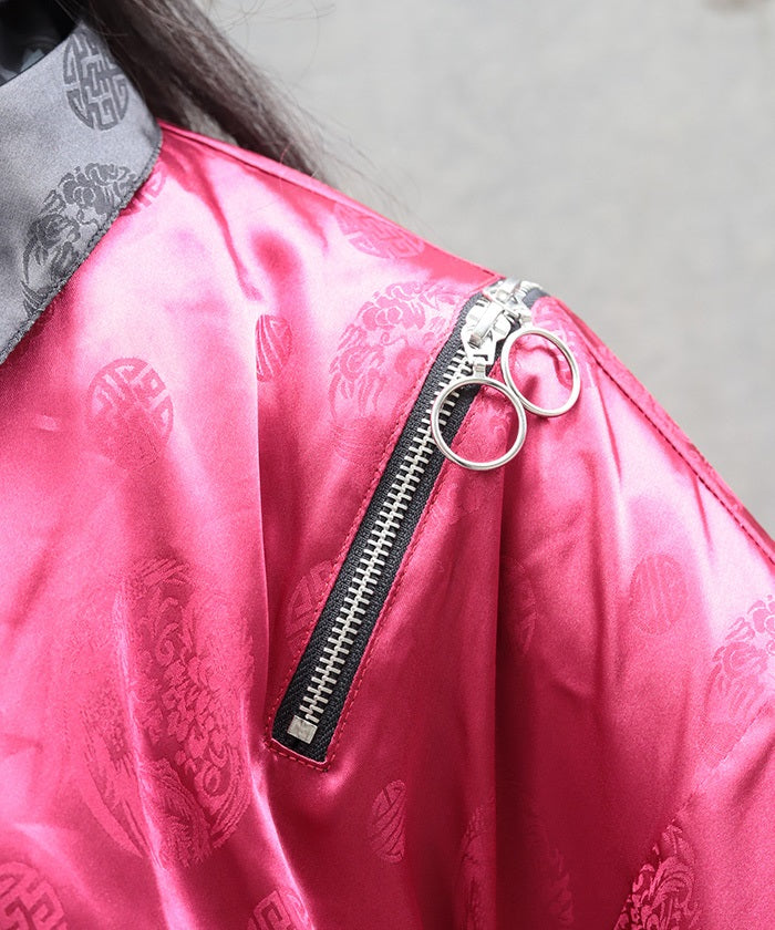 The edgy color scheme and shoulder zippers create a unique look like no other.