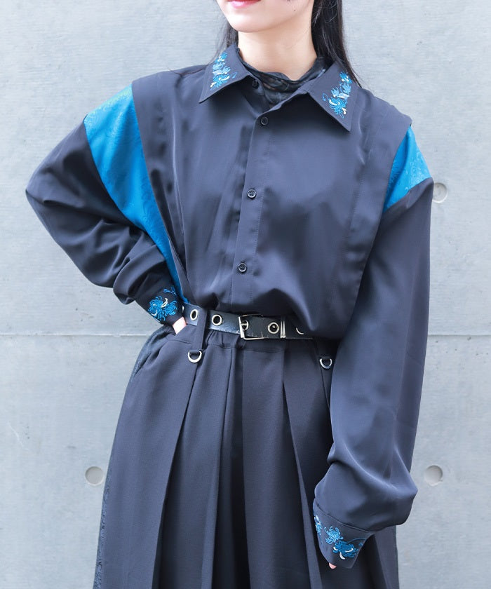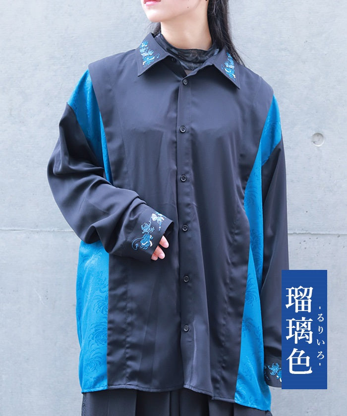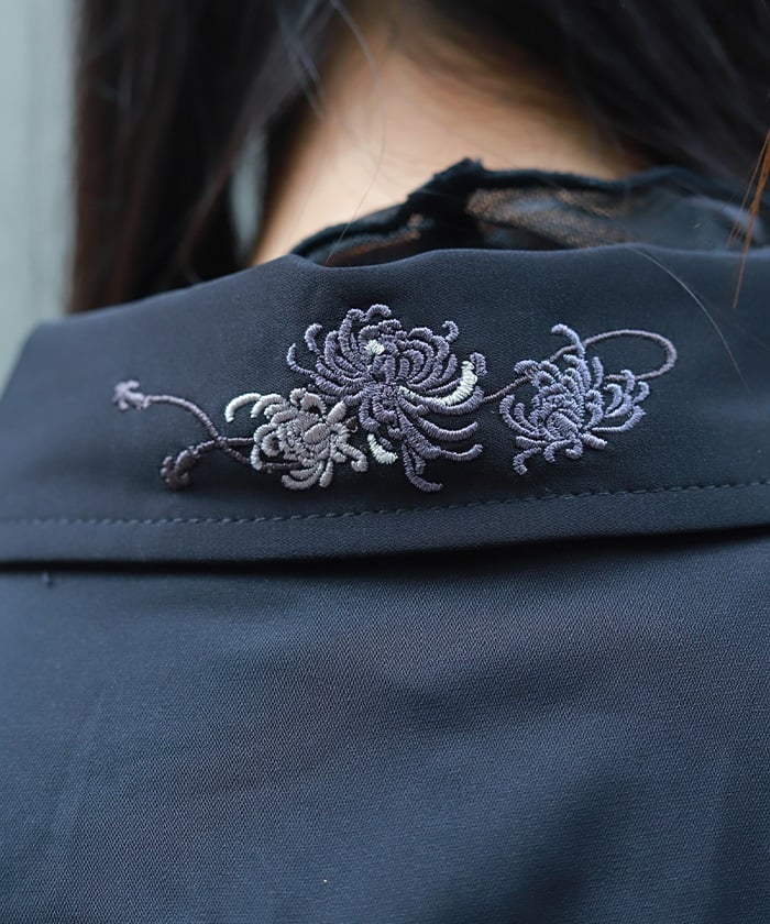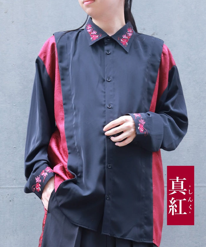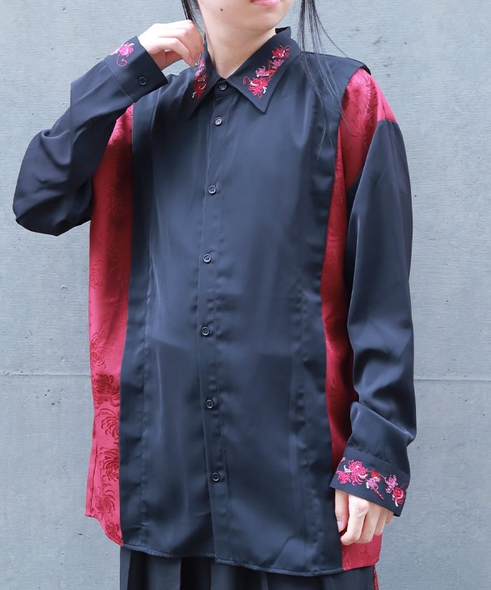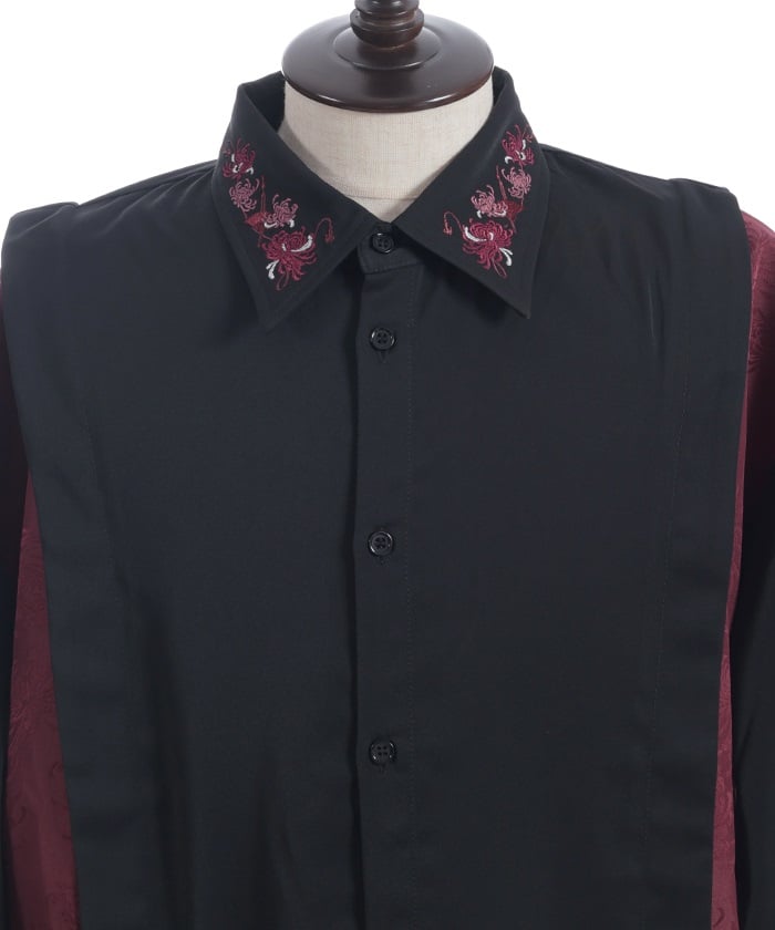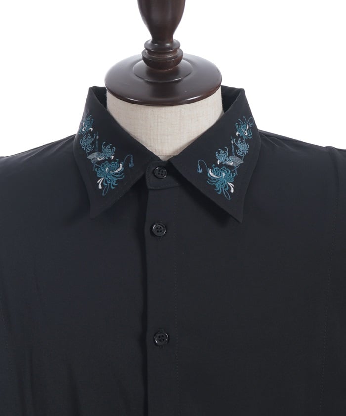 Adorned with chrysanthemum embroidery, this shirt gives off a Japanese high-fashion air.