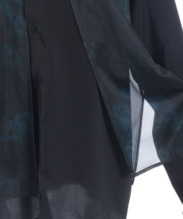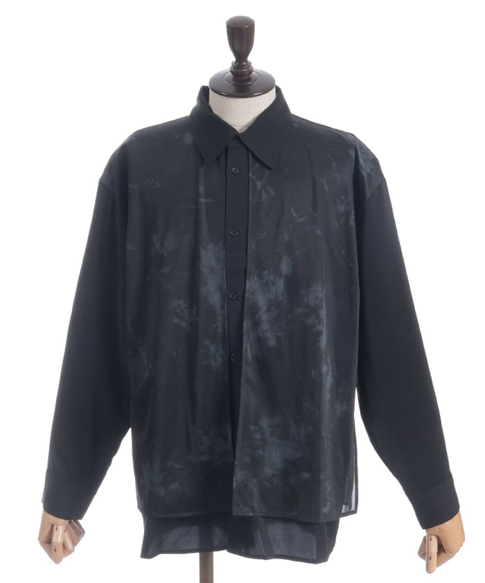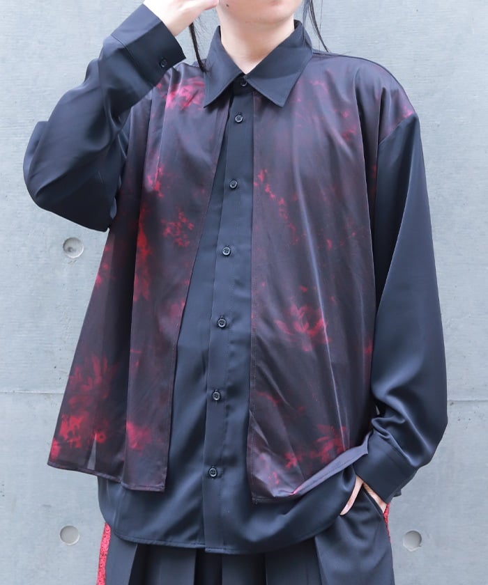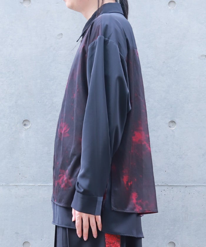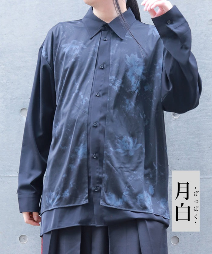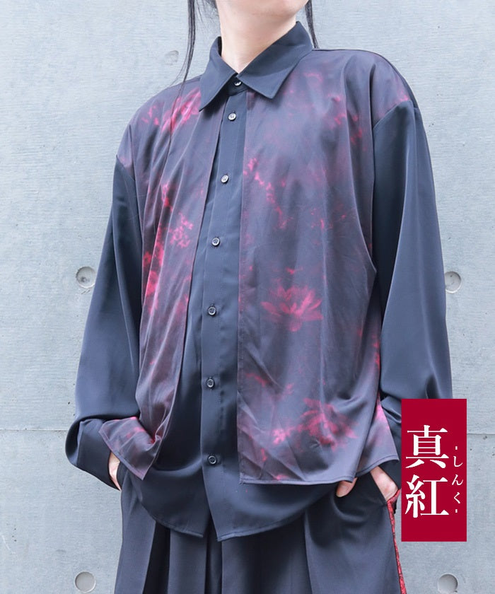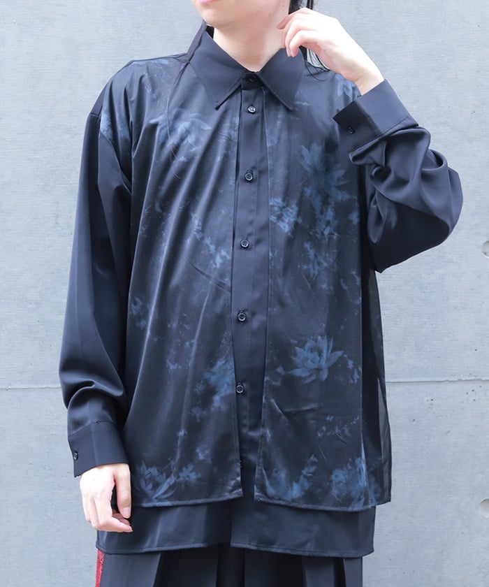 Printed with a lotus flower and haze pattern, this layered shirt gives off a Japanese high-fashion air.
