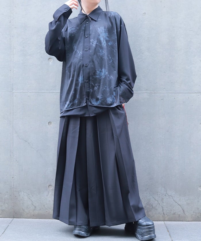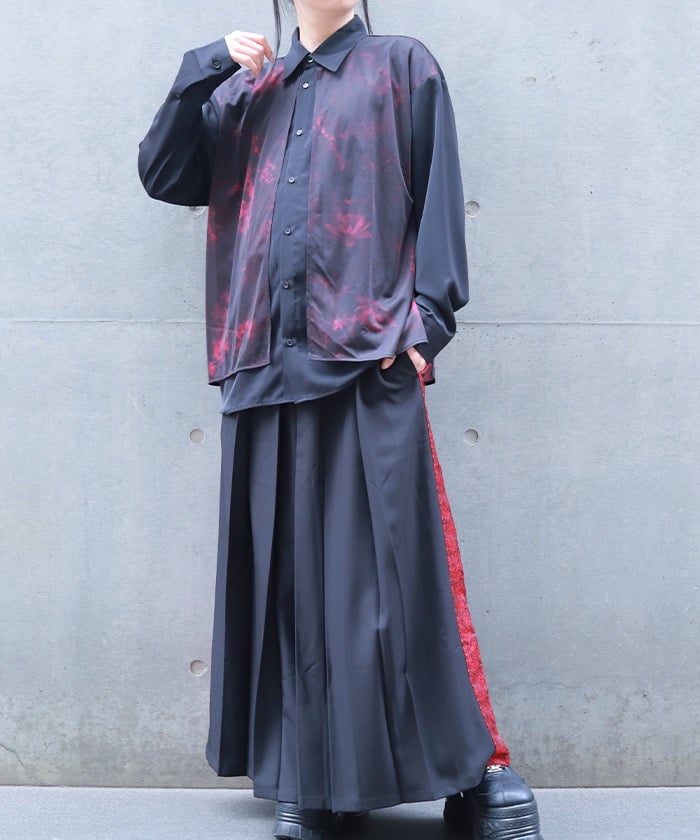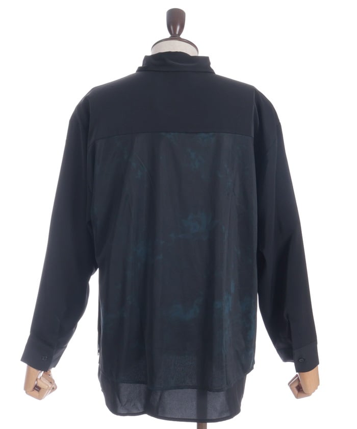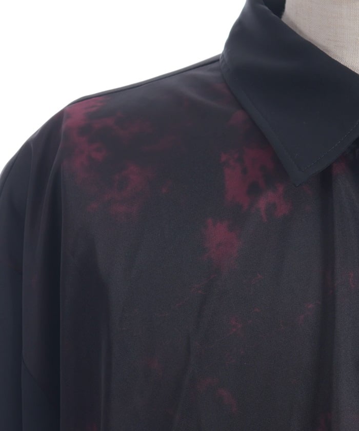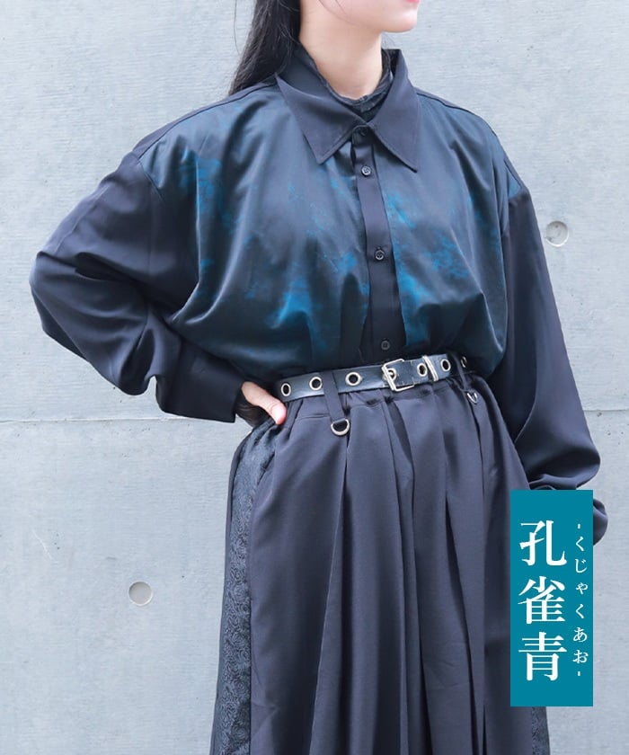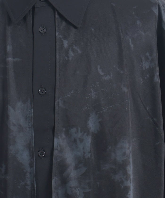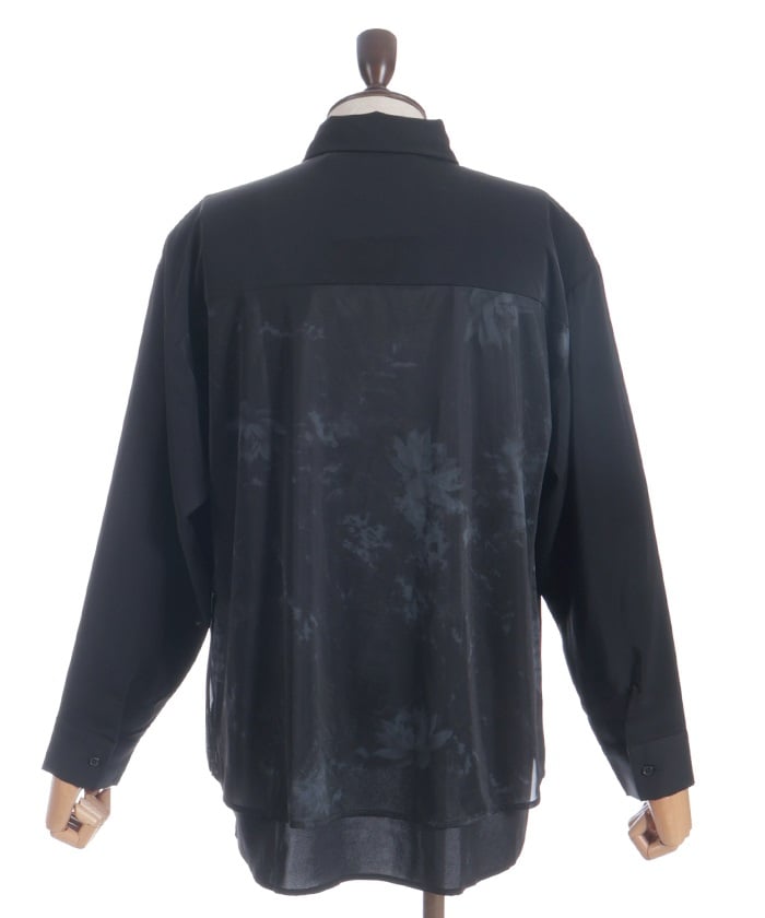 Printed with a lotus flower and haze pattern, this layered shirt gives off a Japanese high-fashion air.