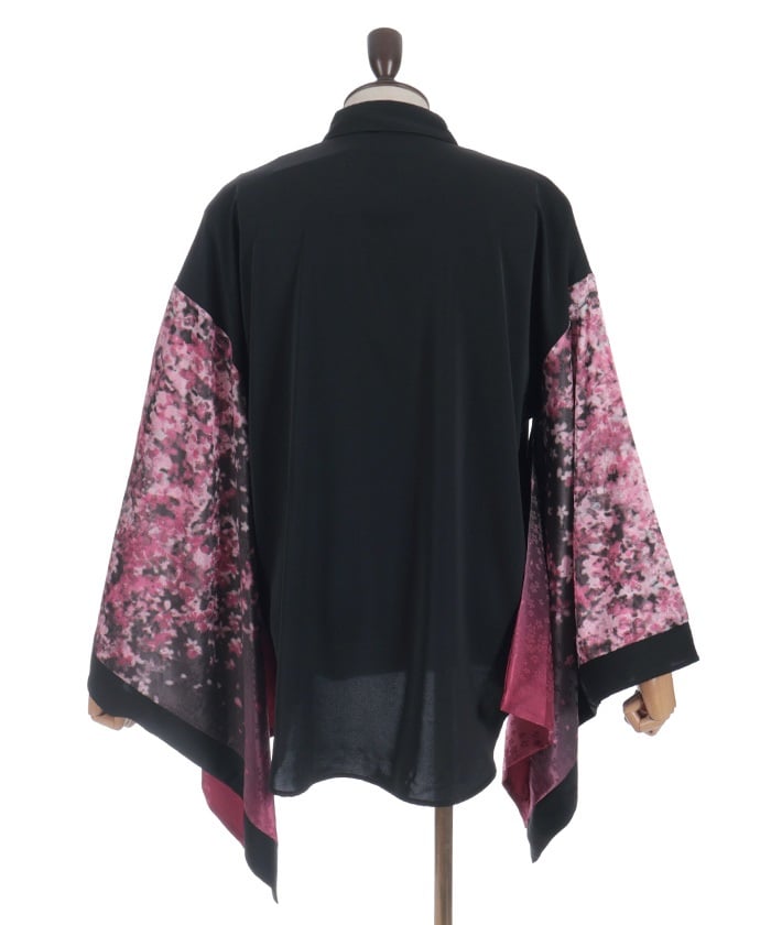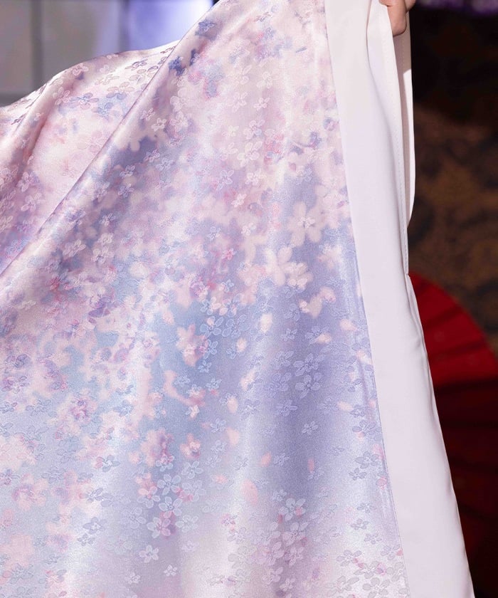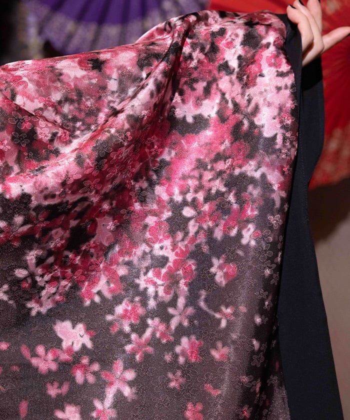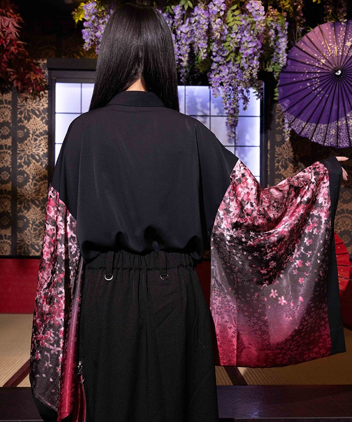 The sleeves are made of lustrous jacquard fabric with cherry blossom designs.