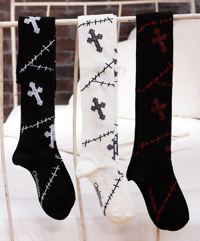 Patchwork Cross Over-knee Socks (Time-limited Price)