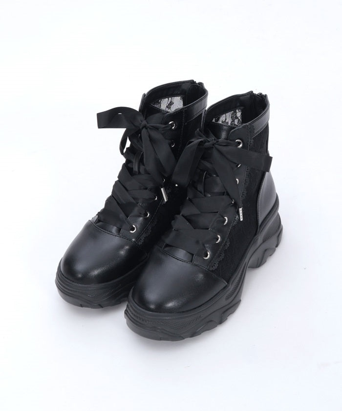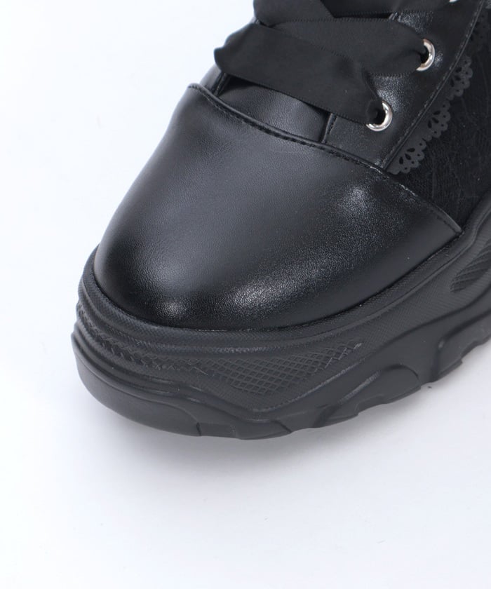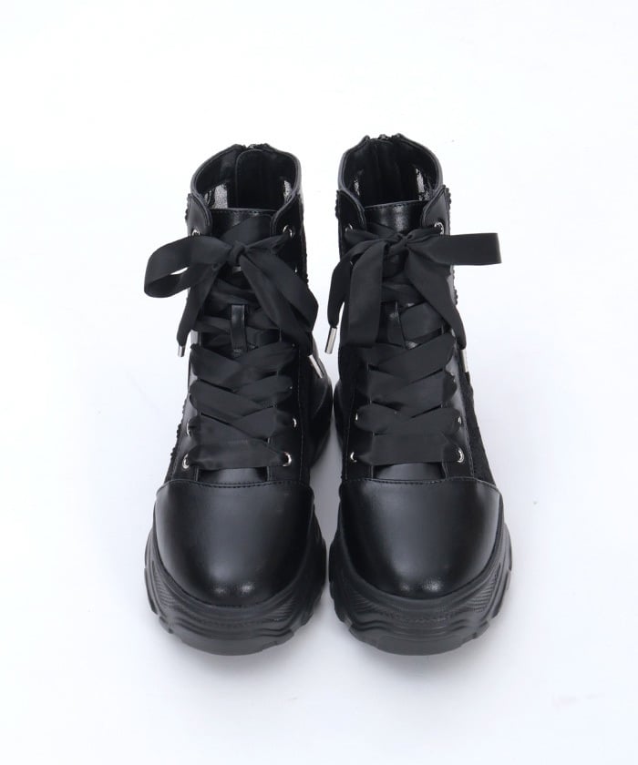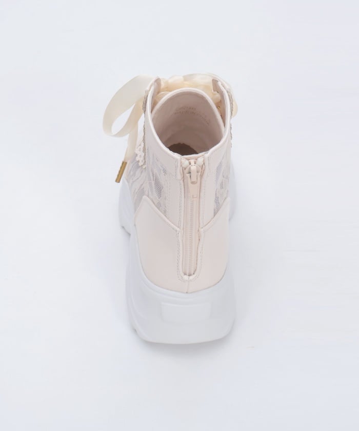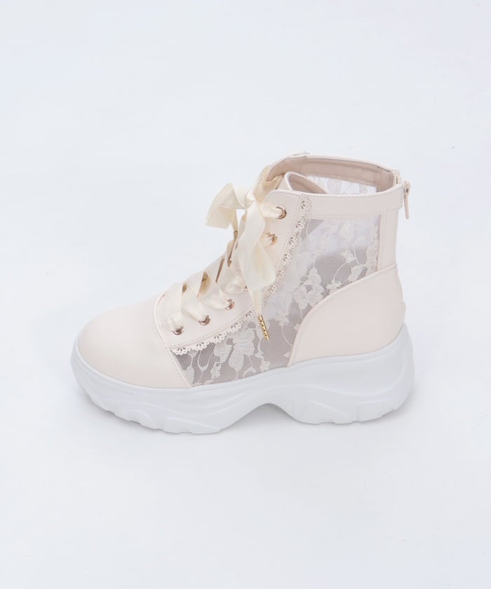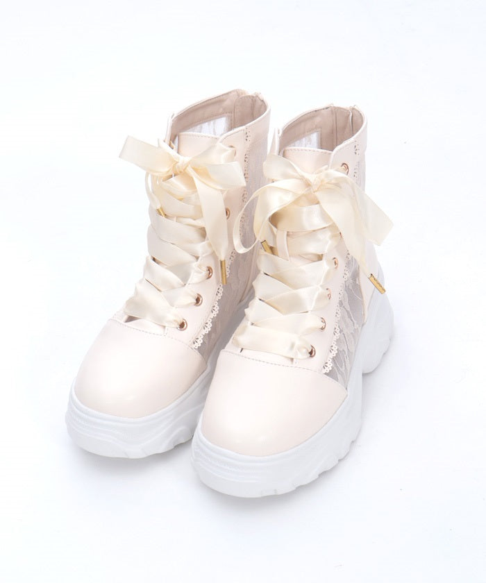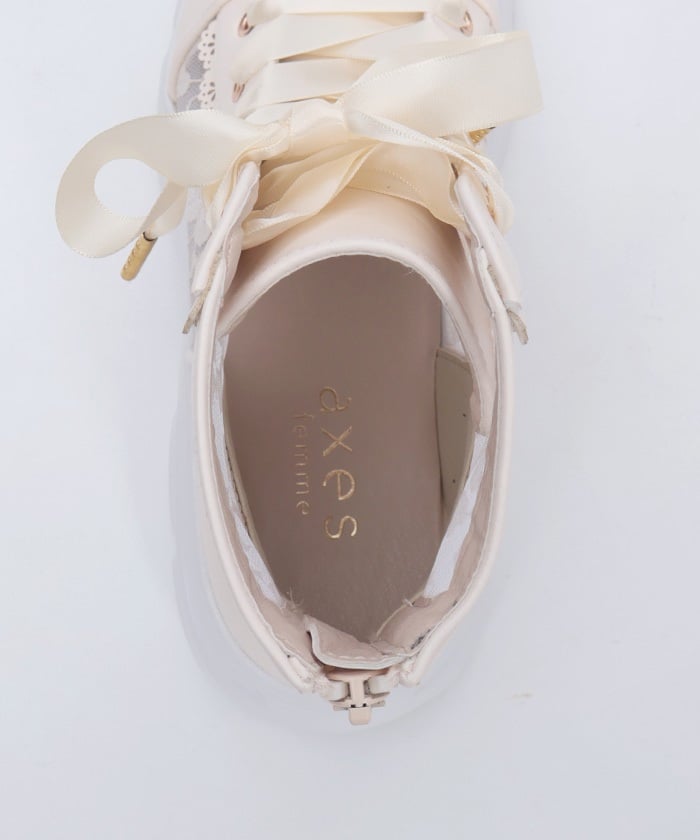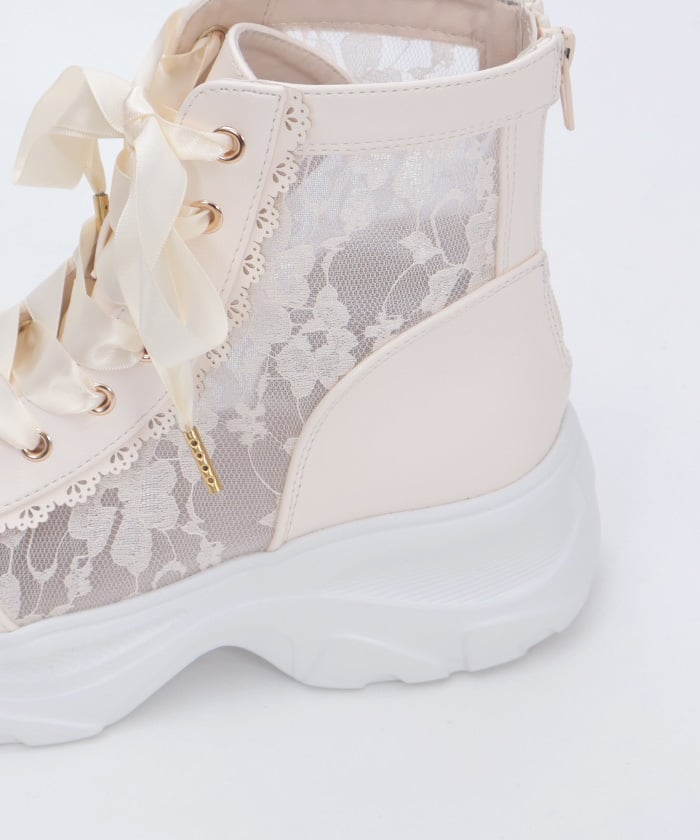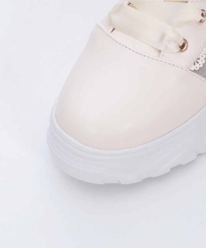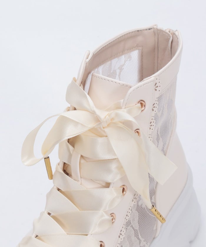The satin ribbon lace-up and subtle cutwork scallop detailing create a feminine yet casual look.