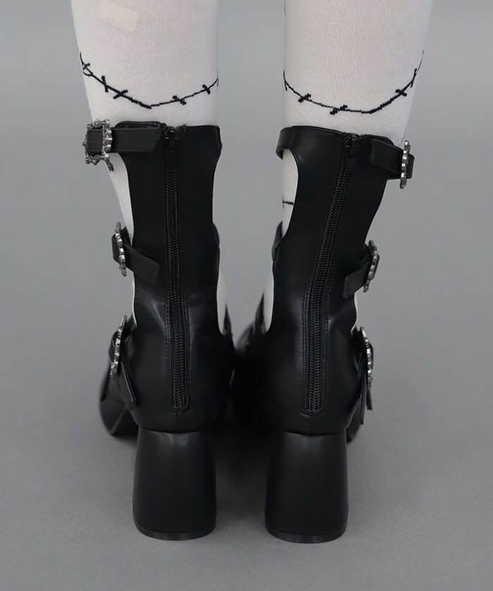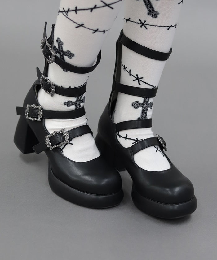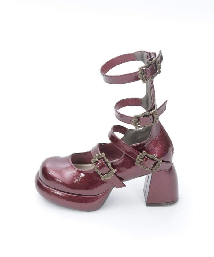 Introducing four-buckle pumps perfect for both gothic and classic styles.
