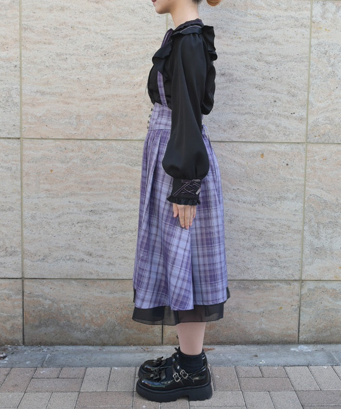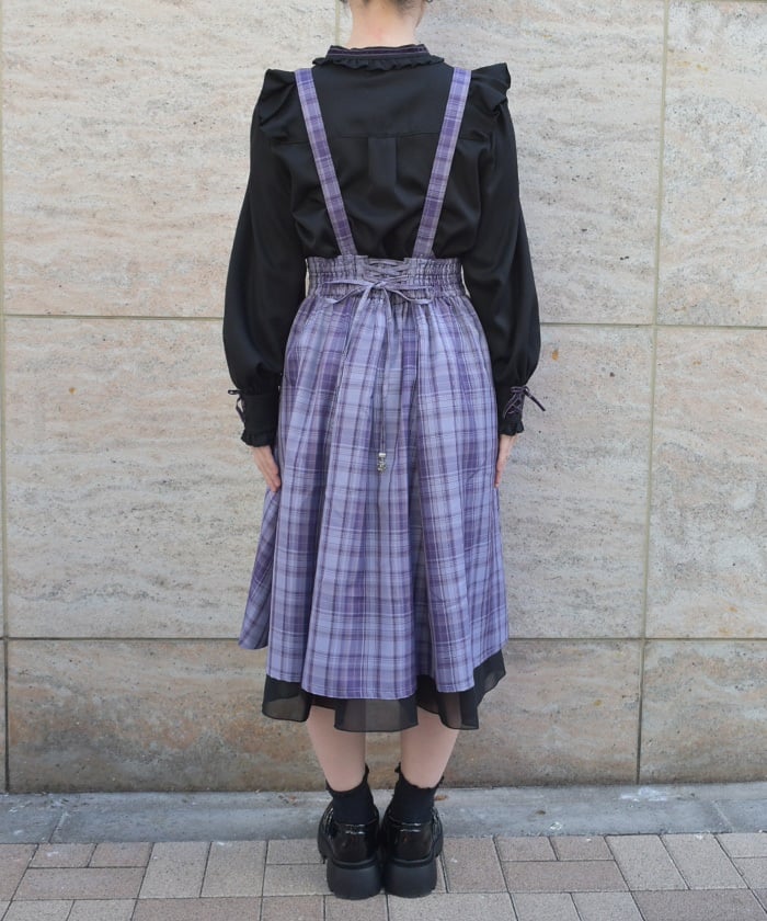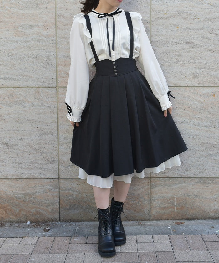 The suspenders make it a focal point of your outfit, and the lace-up back waist allows you to adjust the silhouette to fit your body shape.