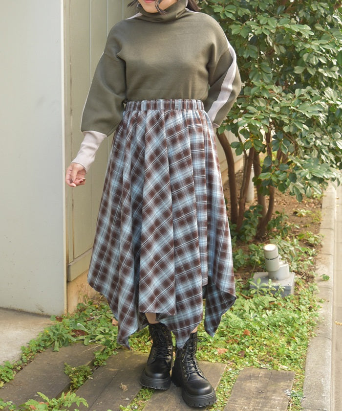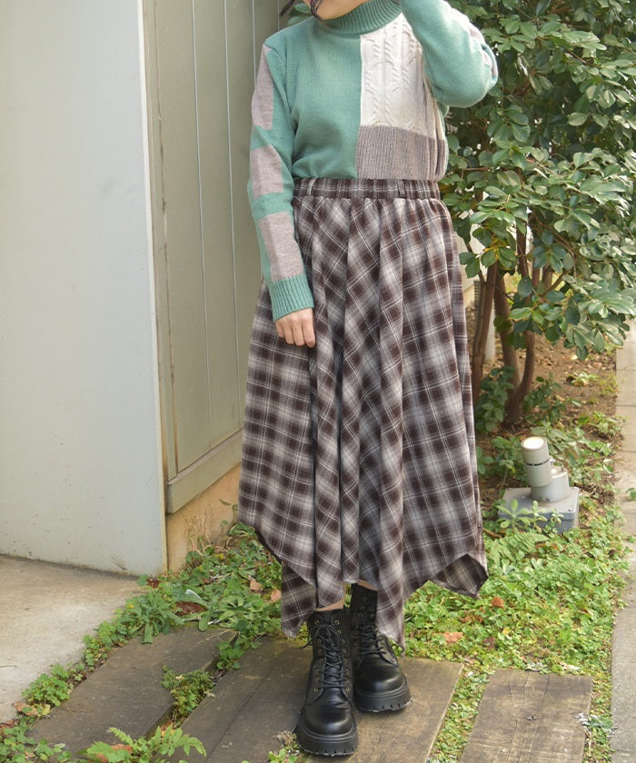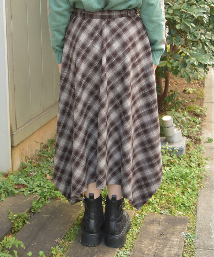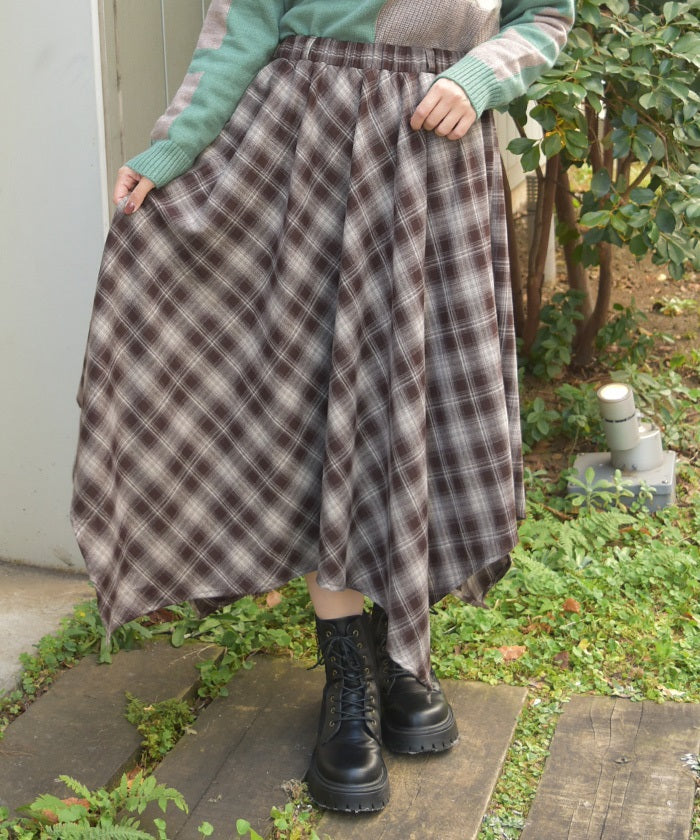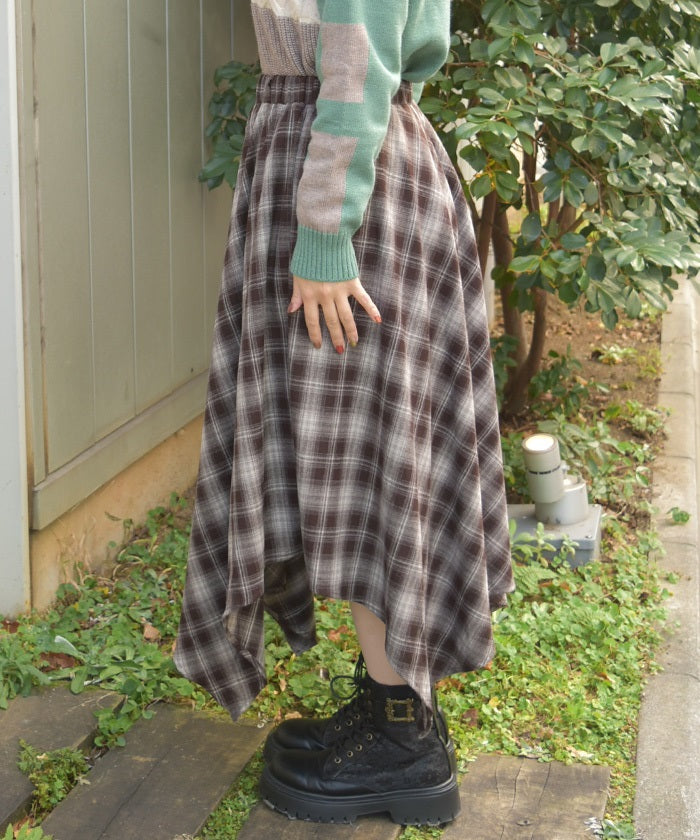 Check Irregular Hem Skirt
