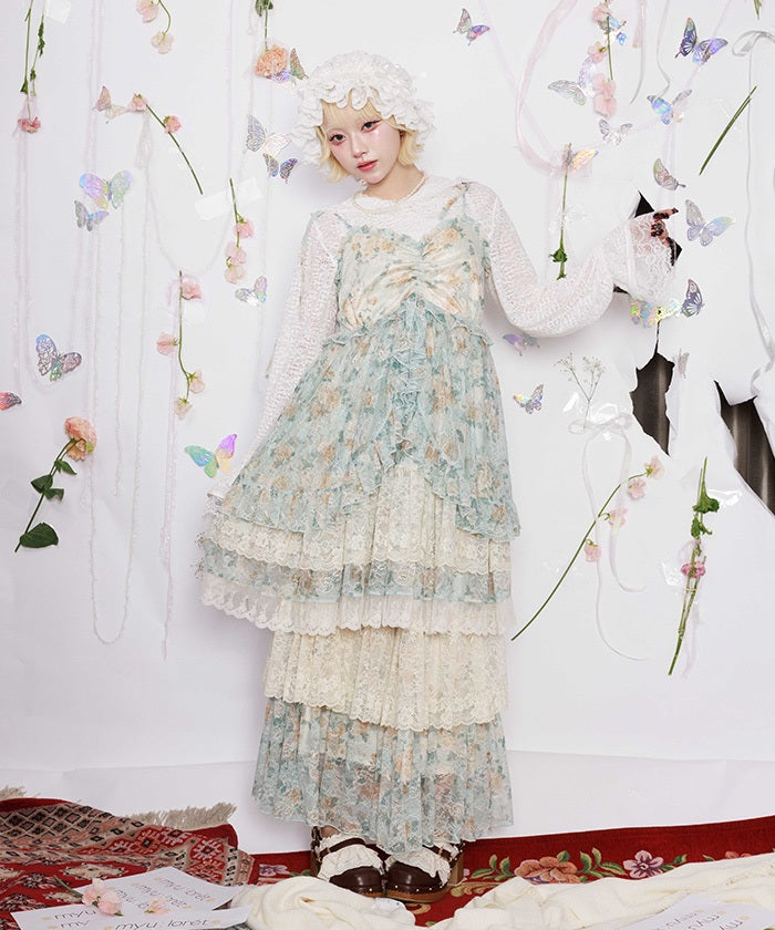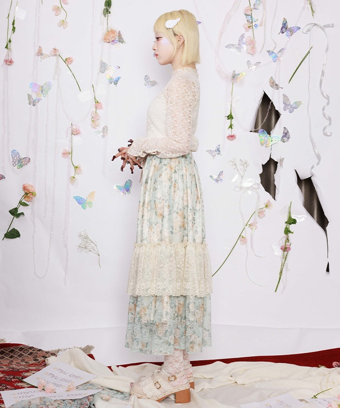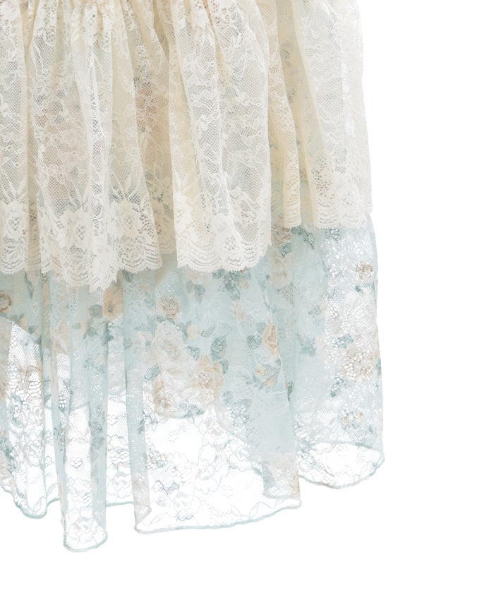 A charming piece with a light look created by layering delicate lace and a voluminous silhouette. It spreads out softly with every movement, creating a gorgeous line that makes you want to twirl around. The waist is made with shirred elastic for a relaxed and comfortable fit.