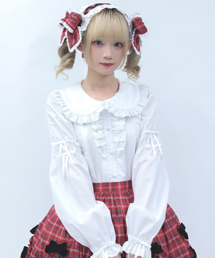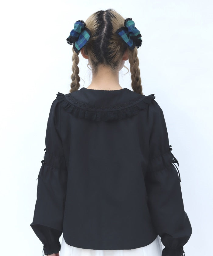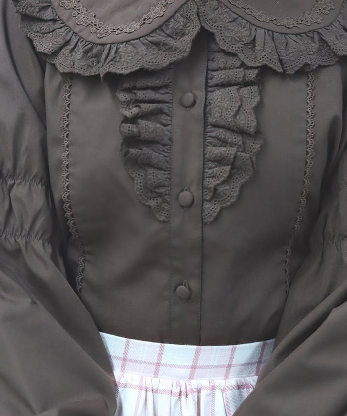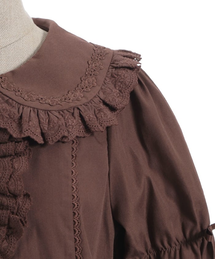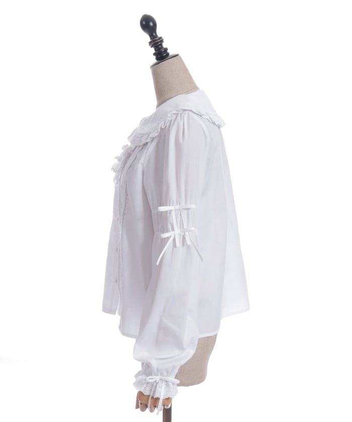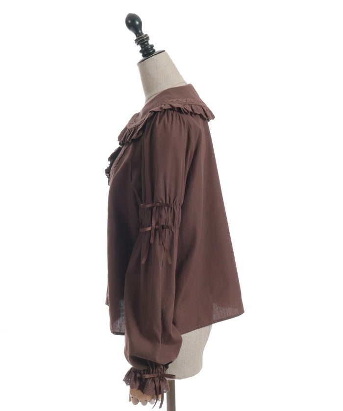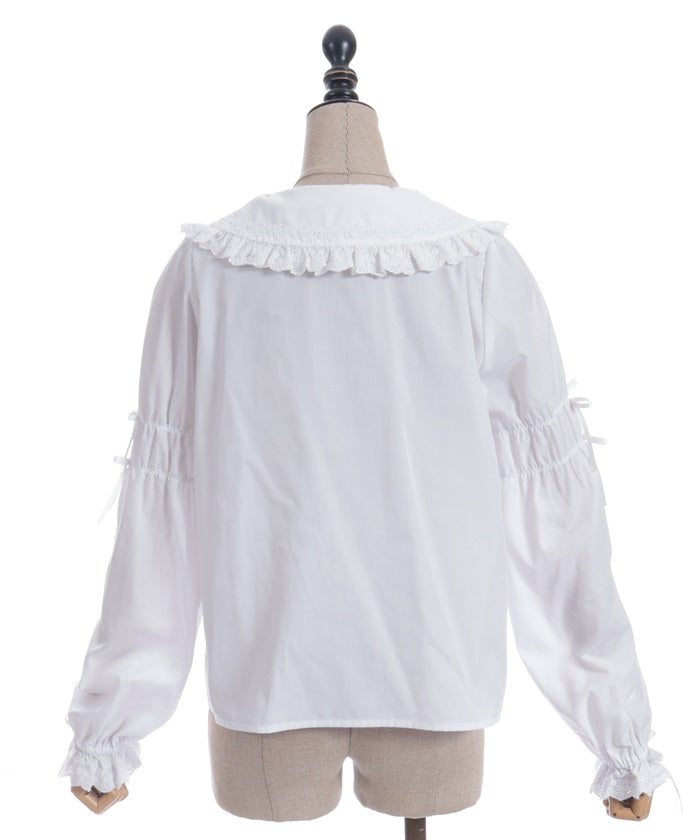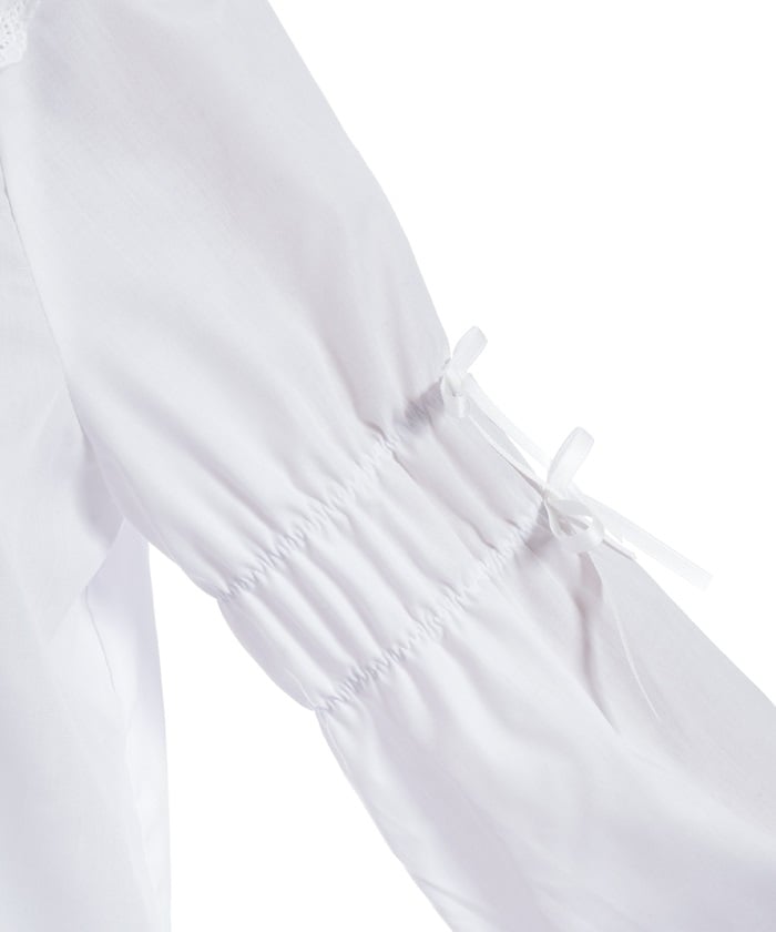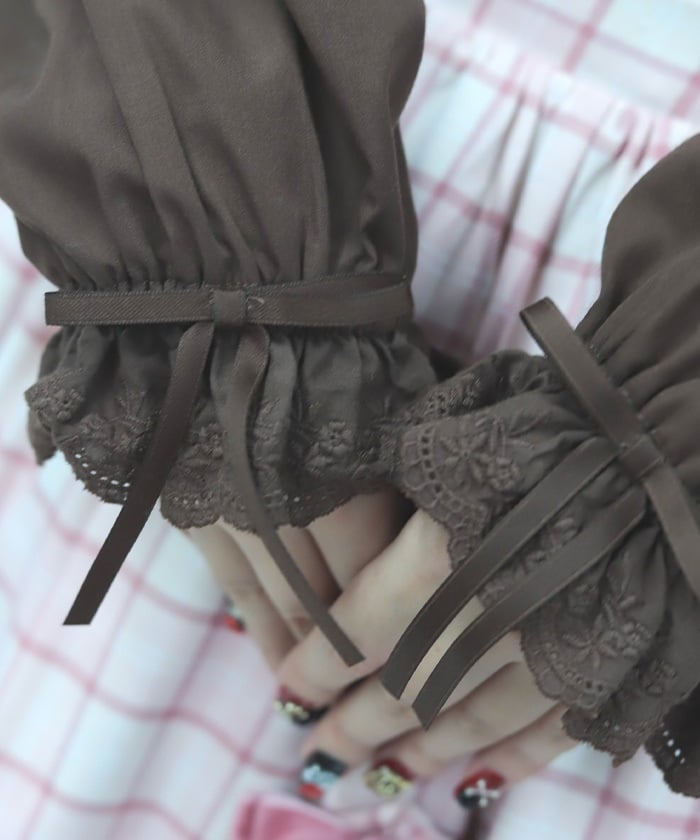 This blouse features plenty of cotton lace and floral lace. The sleeves have elastic for a soft, gentle fit. The thin ribbons keep it from becoming overly sweet.