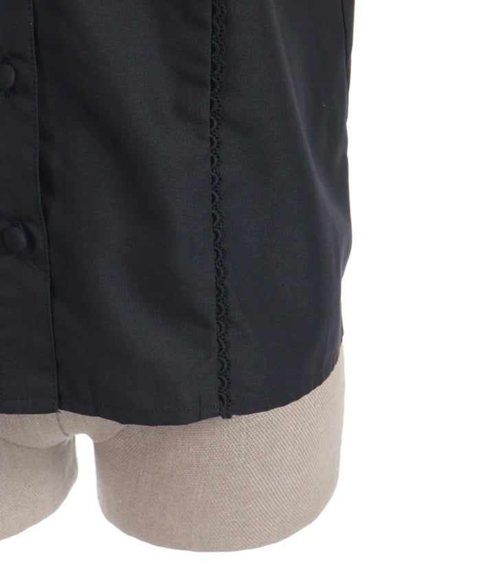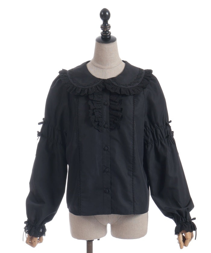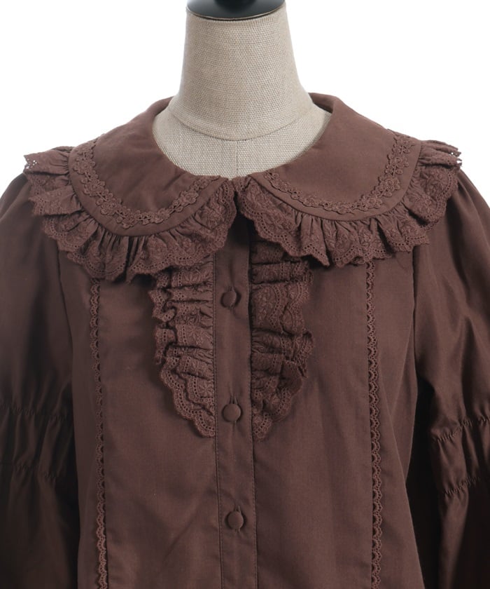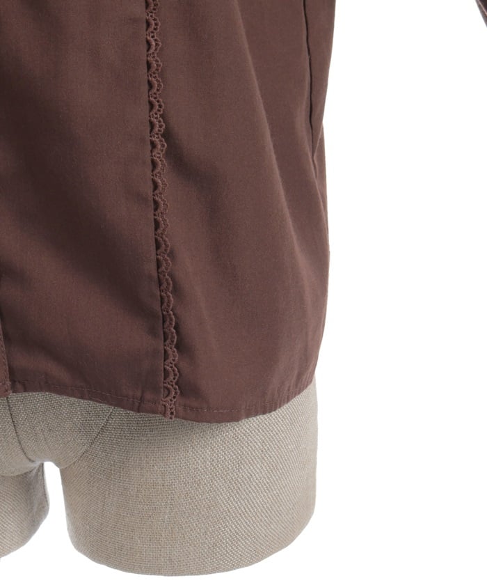 A versatile blouse featuring a round collar and cotton lace accents.