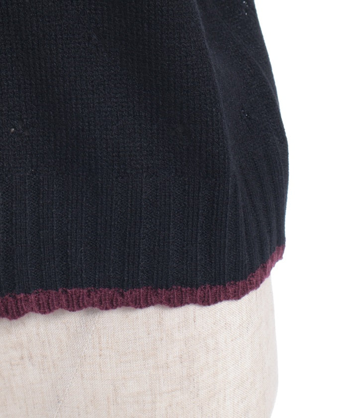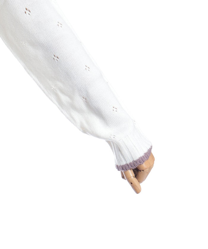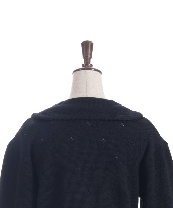 This cozy and warm knit features cat's-foot openwork knitting throughout for a streamlined look.