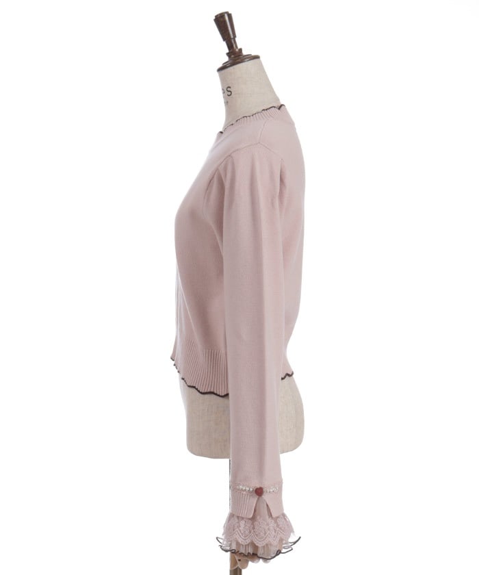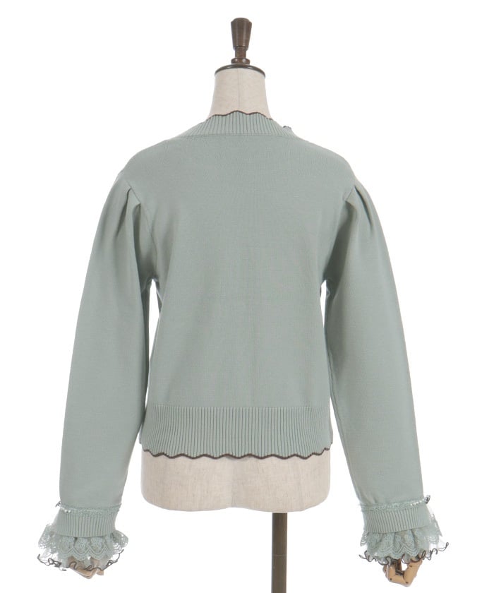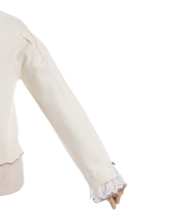 It uses the same threads and buttons as our Heart Button Bicolor Knit Cardigan, so it can be layered like an ensemble.
