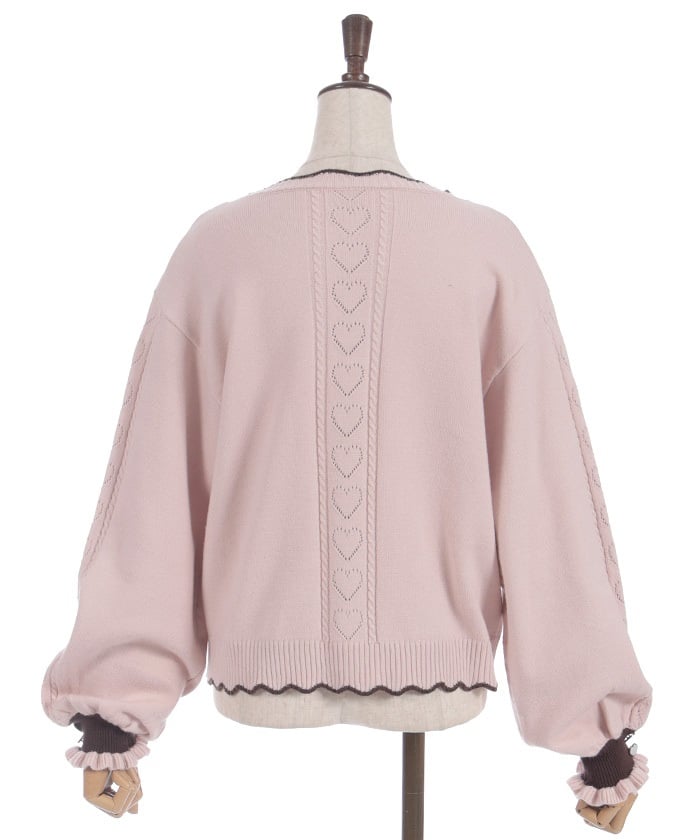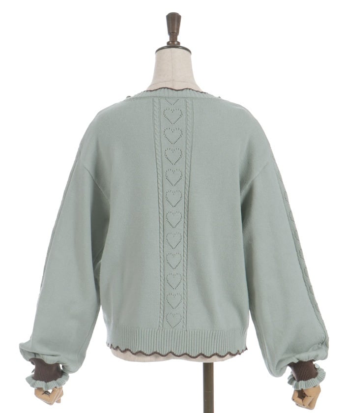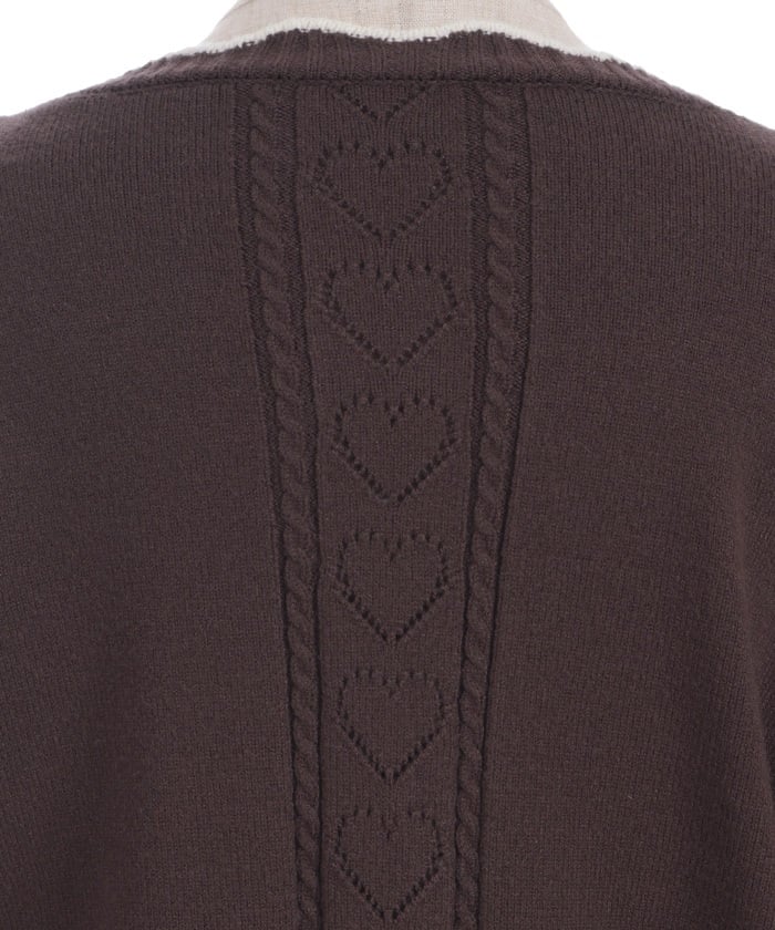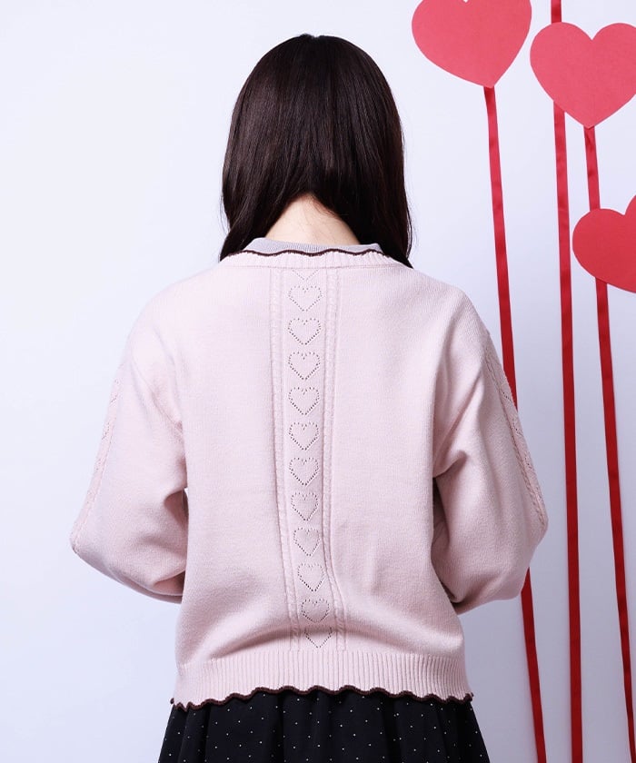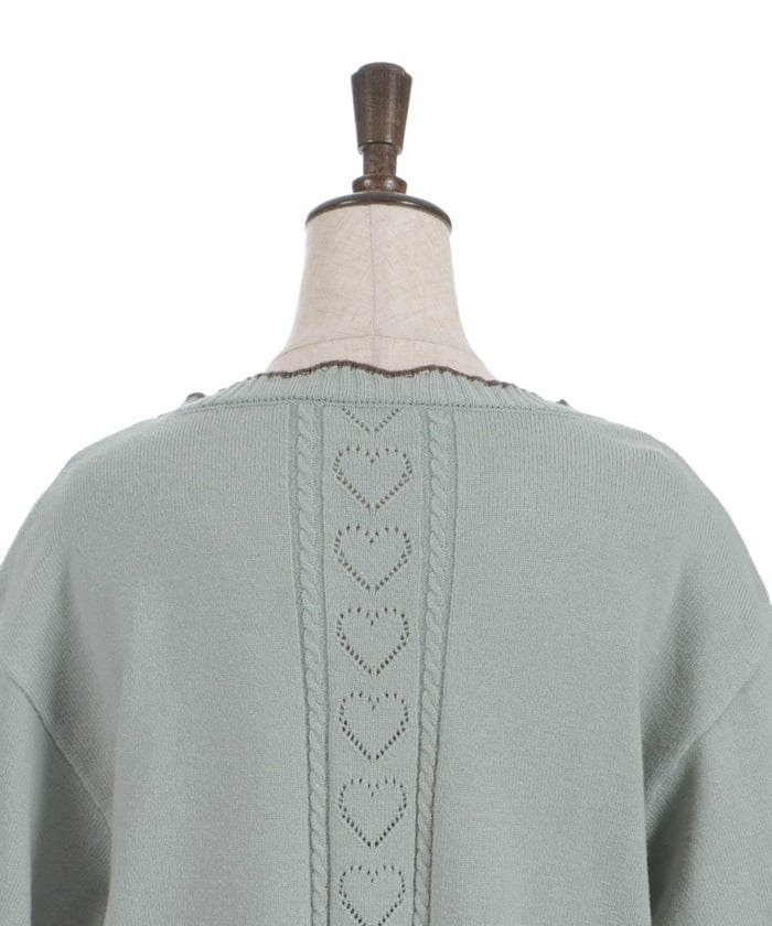 The sleeves and back feature a heart-shaped openwork pattern.