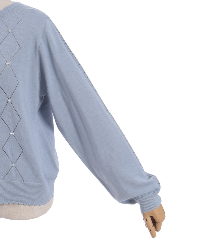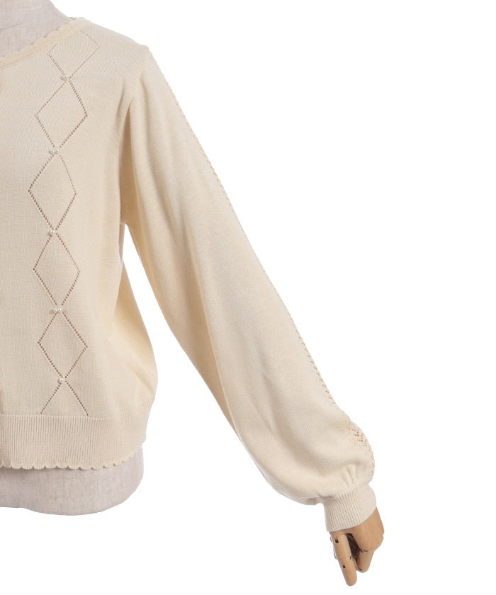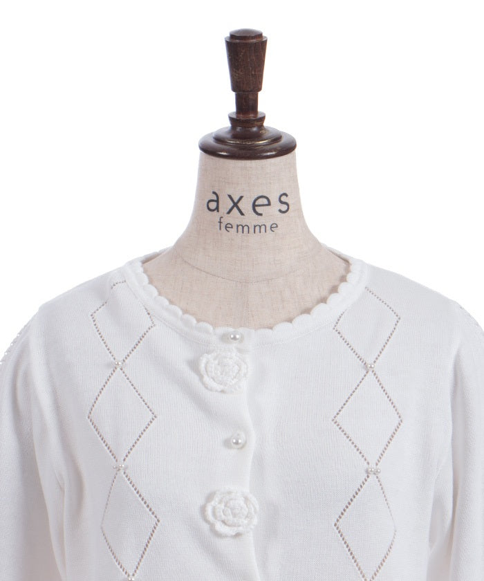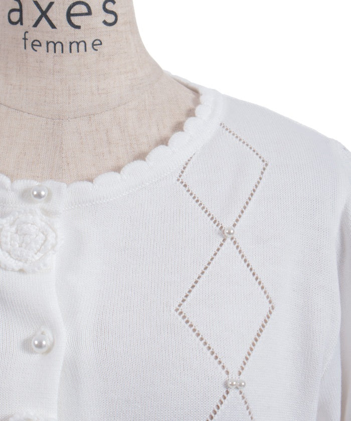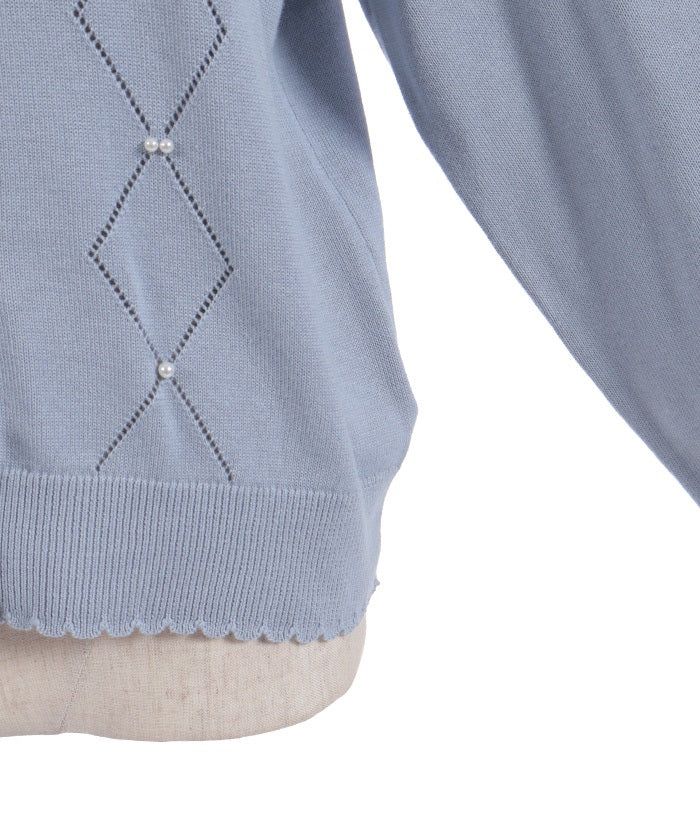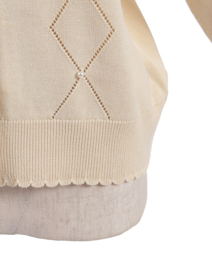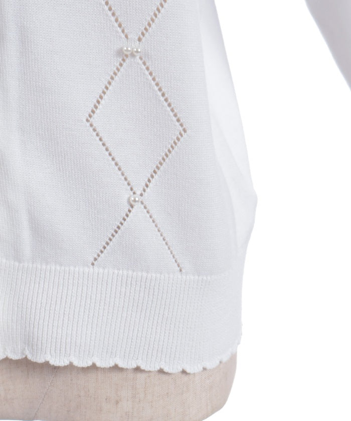 Two small pearls are placed in the center of the openwork diamond pattern for an added touch of elegance.