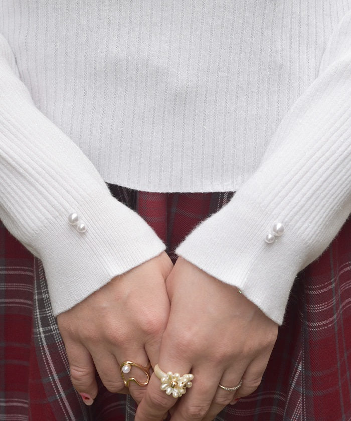 Subtle pearls on the cuffs give this piece a sophisticated finish.