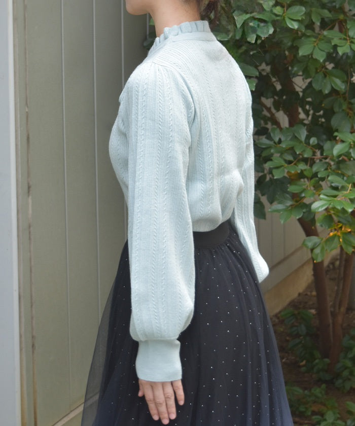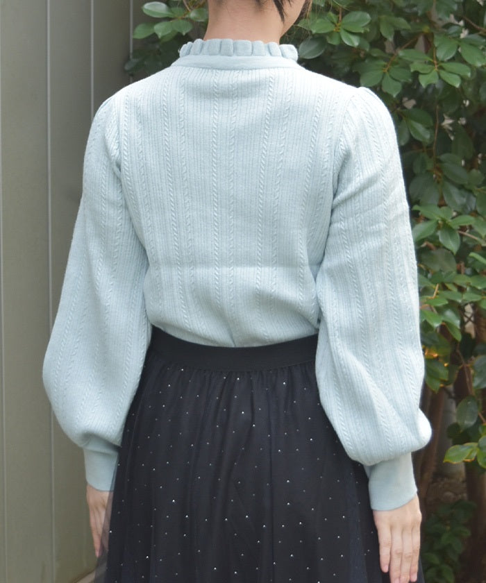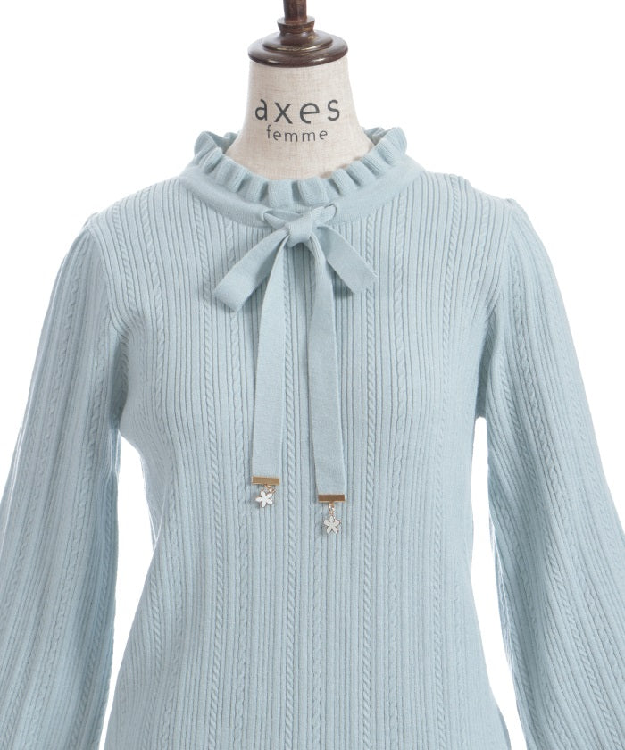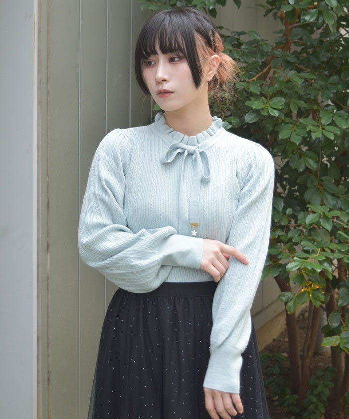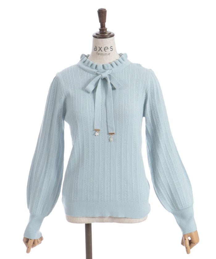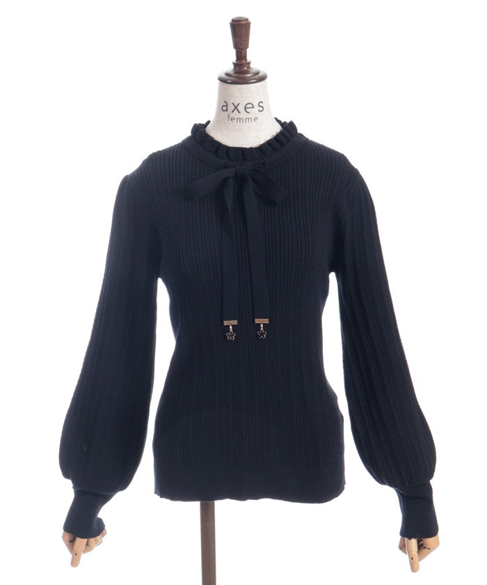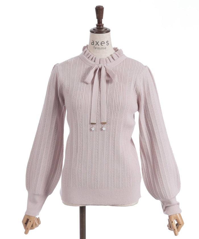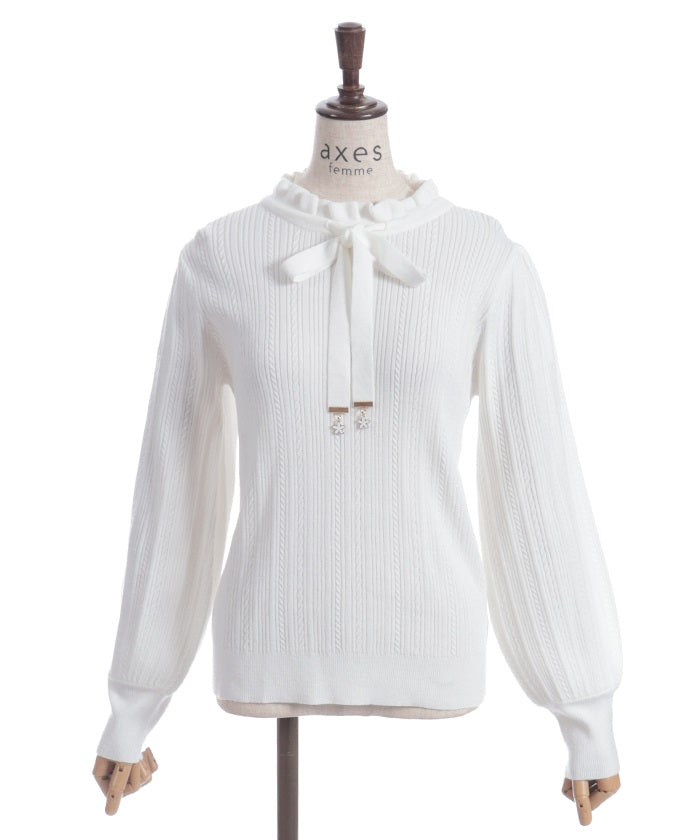 Functional Charm Ribbon Knit Top