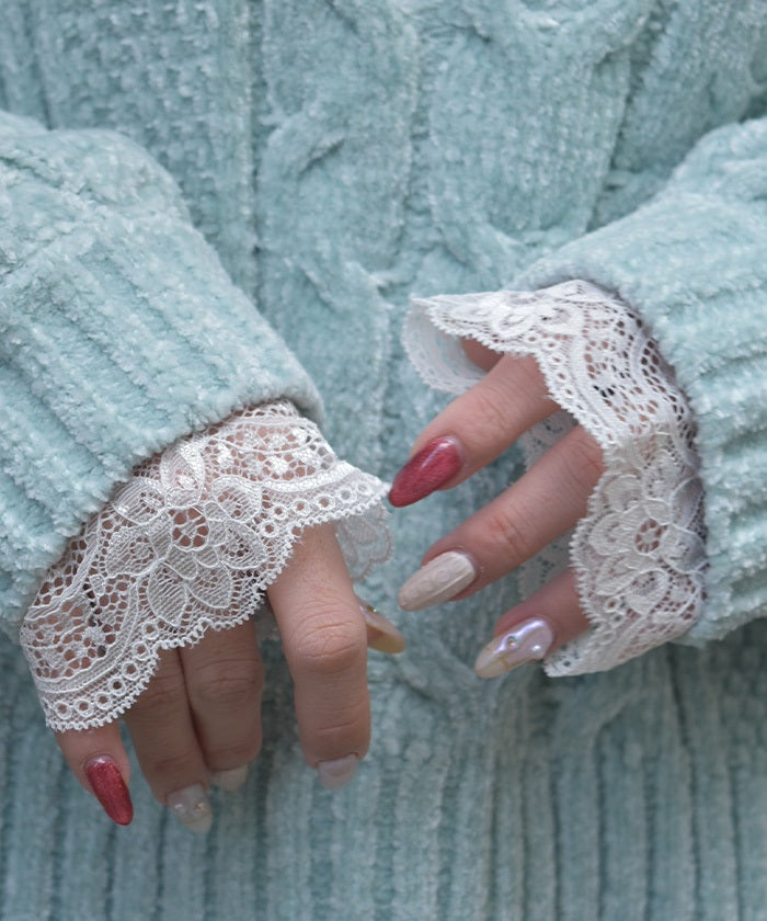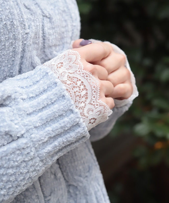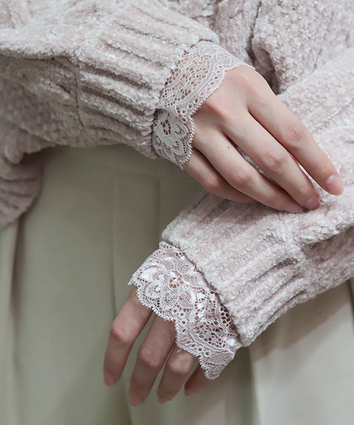 A feminine design features delicate stretch lace peeking out from the cuffs.