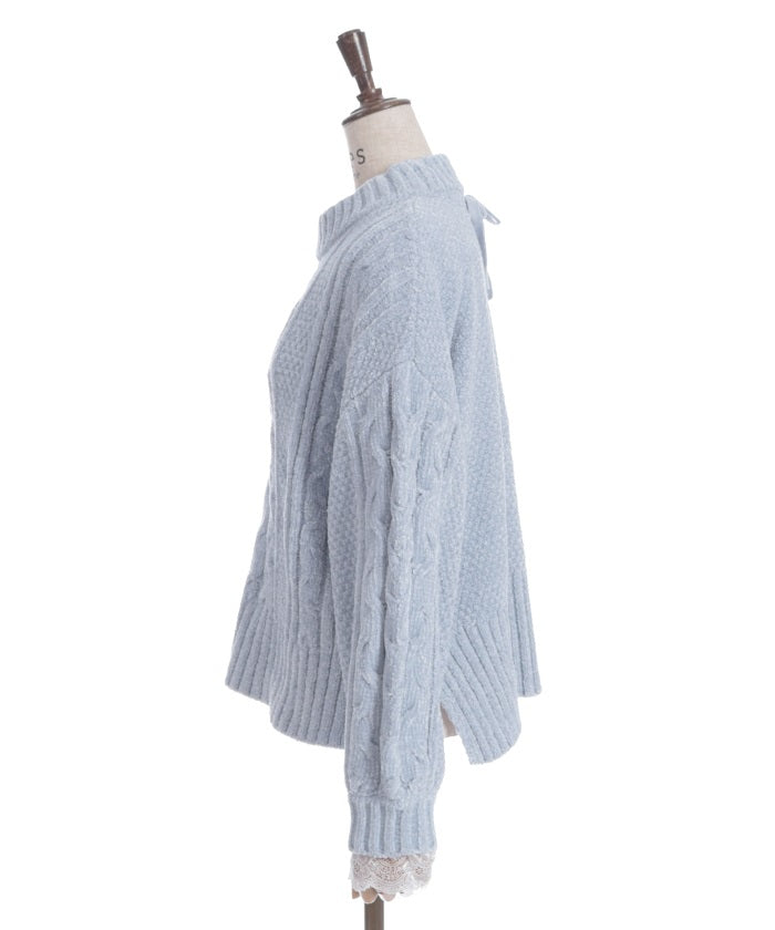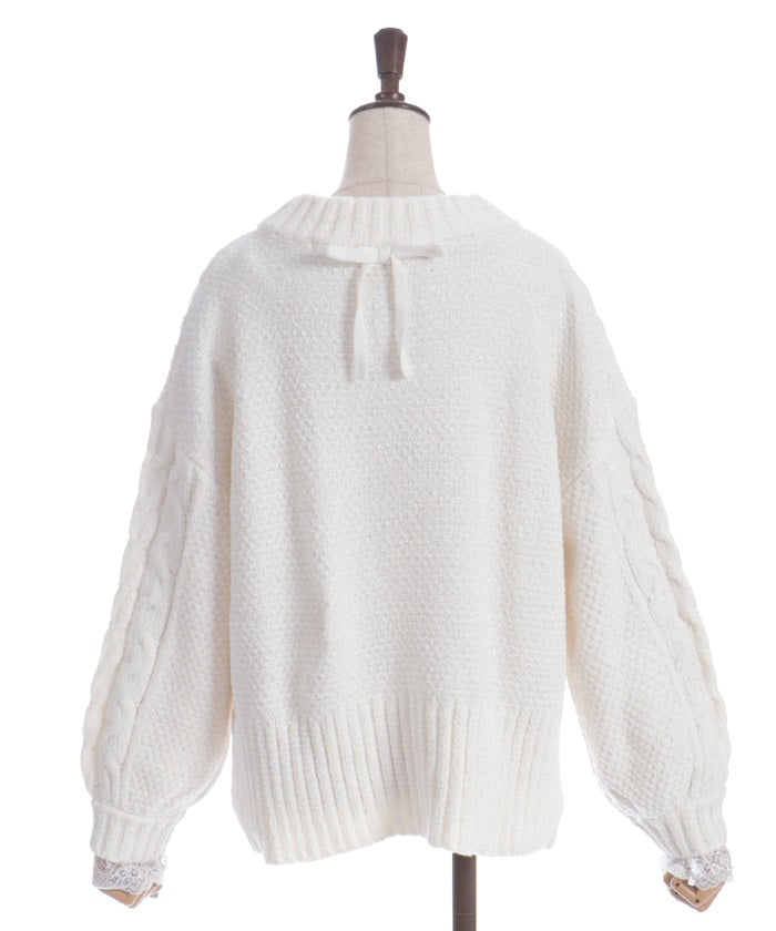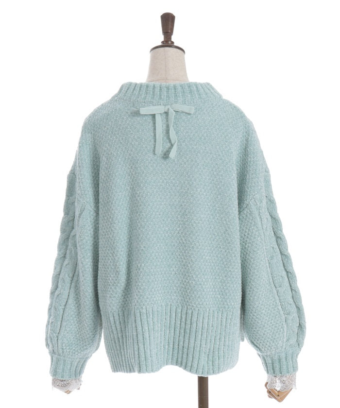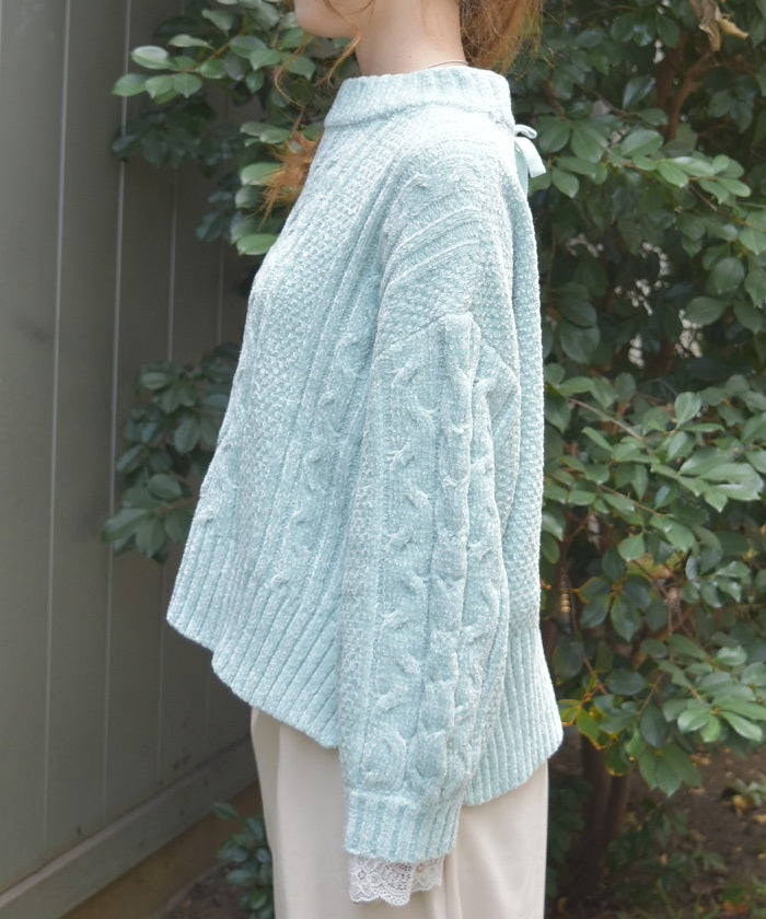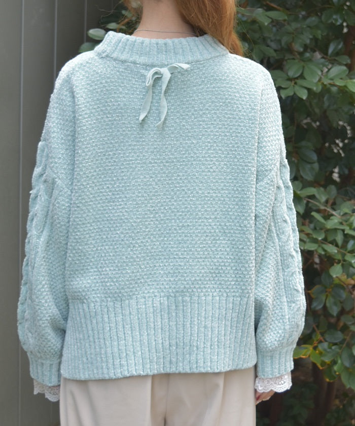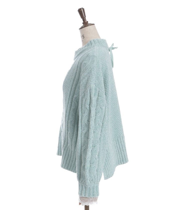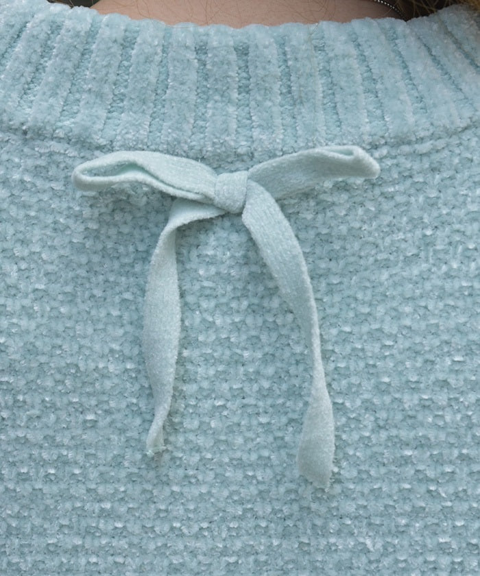 The matching knit ribbon at the back of the neck adds a touch of style.