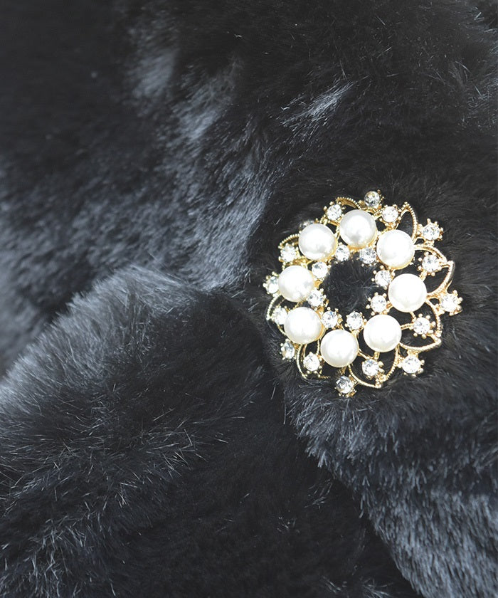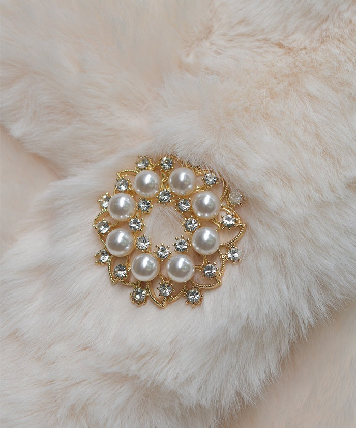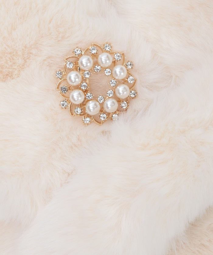 The brooch, adorned with gorgeous pearls and jewels, is removable, so you can wear it anywhere you like.