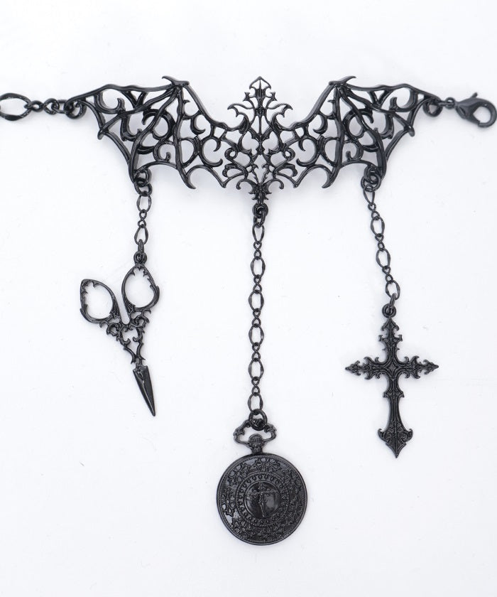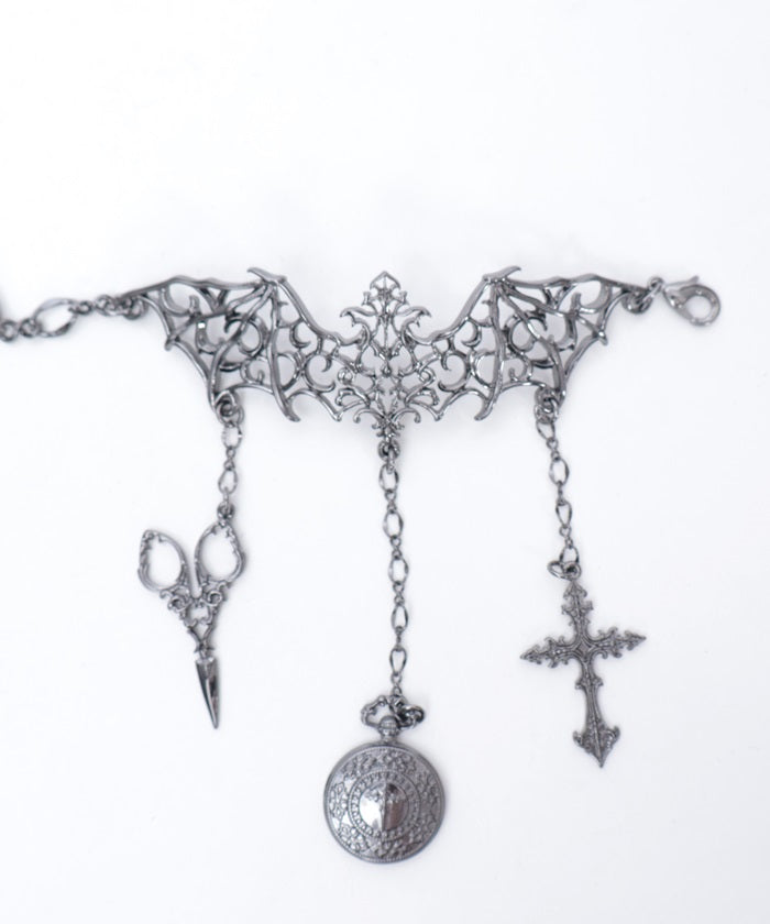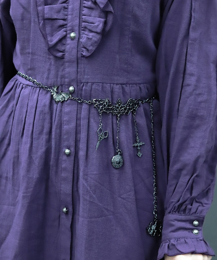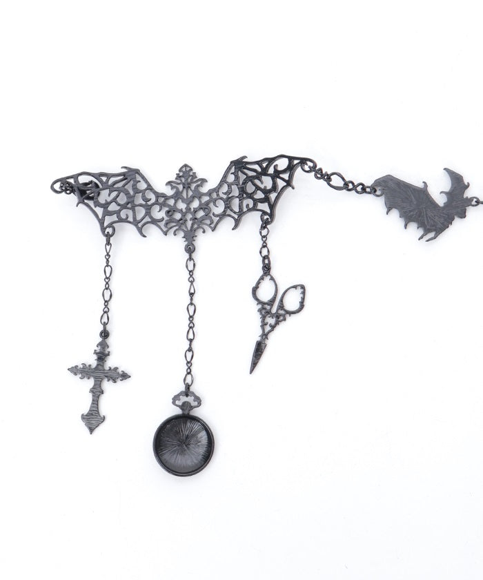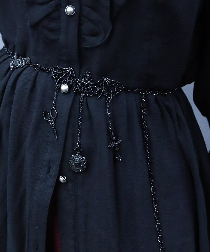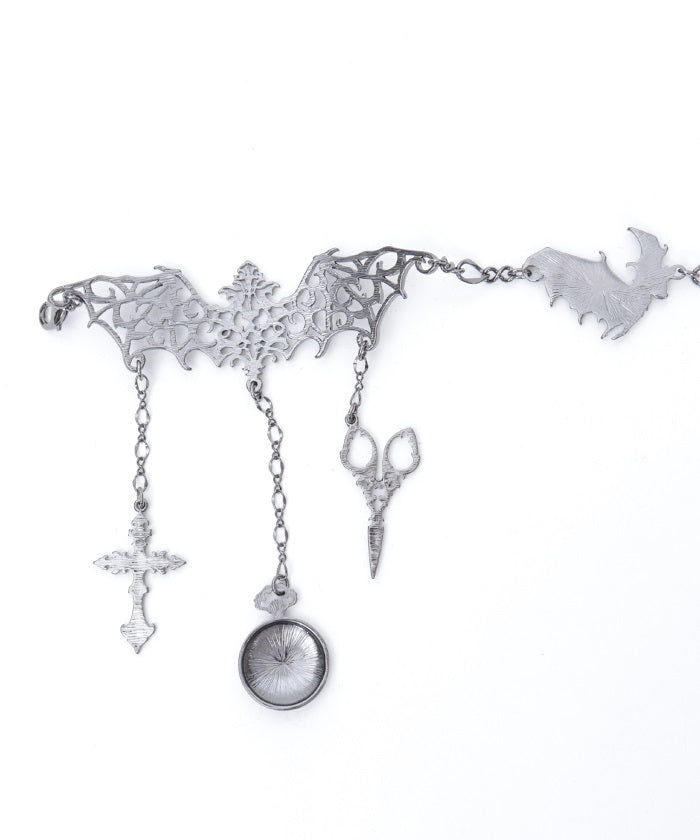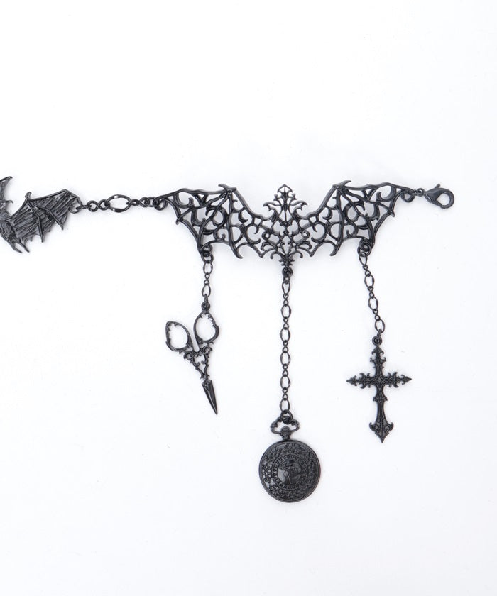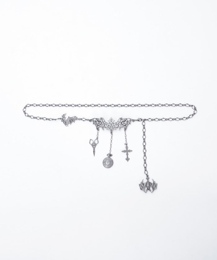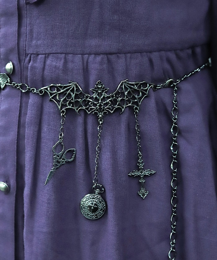 This chatelaine-style chain belt features delicately crafted bats, a symbol of the night.