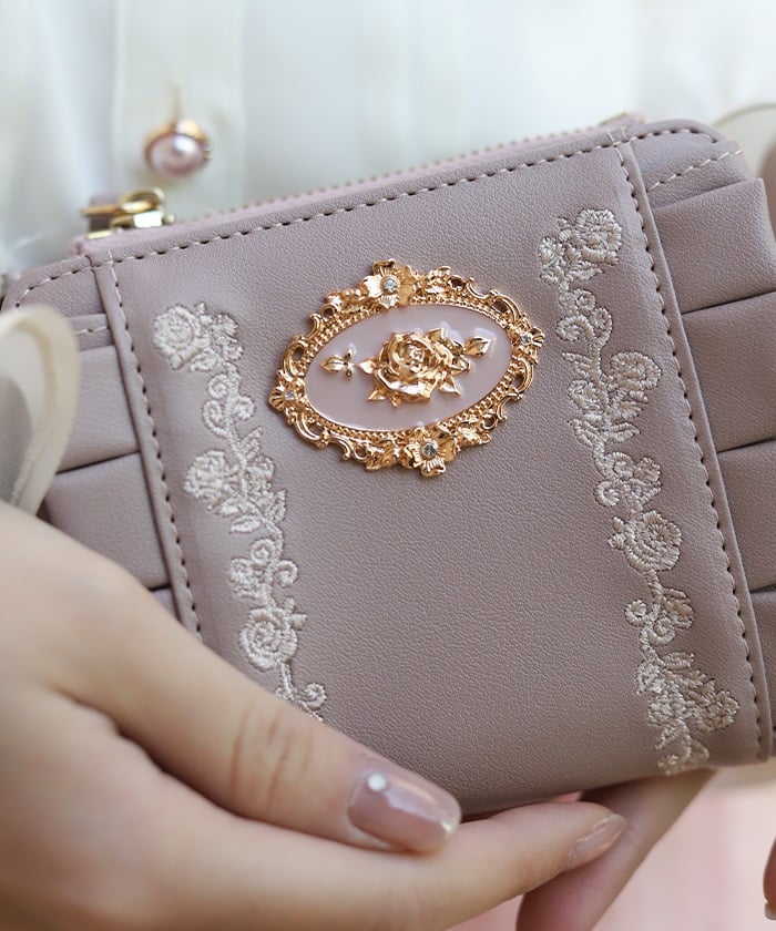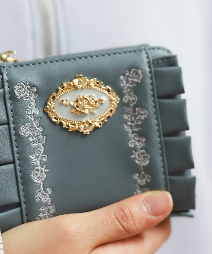 Rose Embroidery Frill Long Wallet