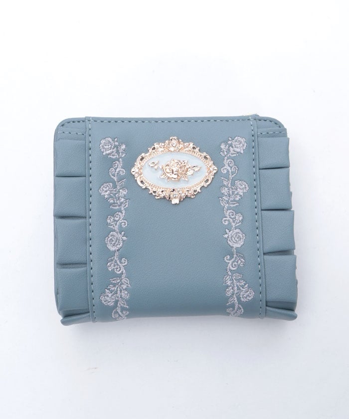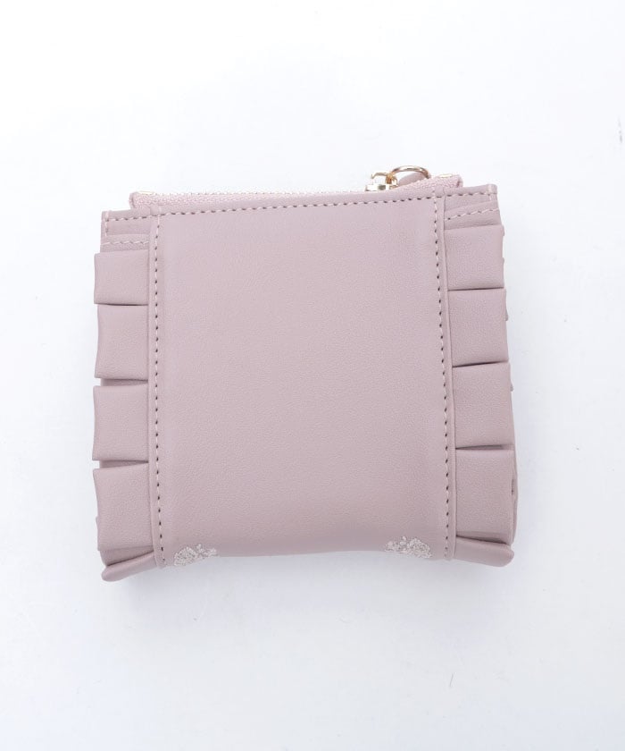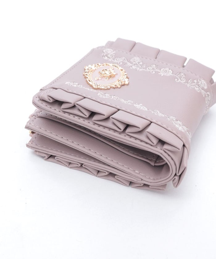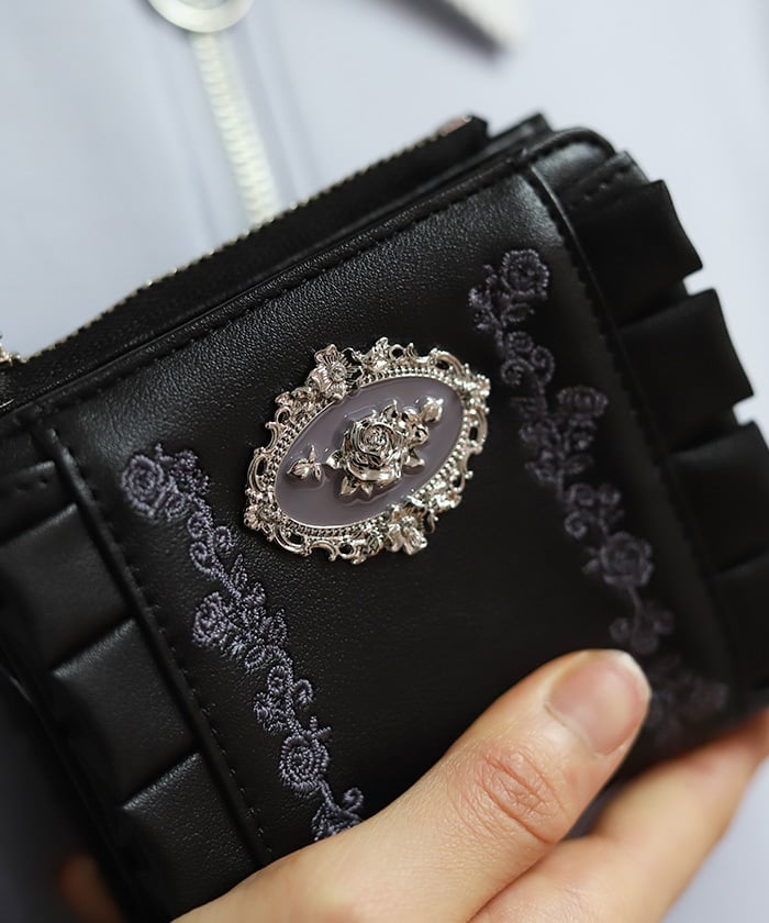 Rose Embroidery Frill Mini Wallet