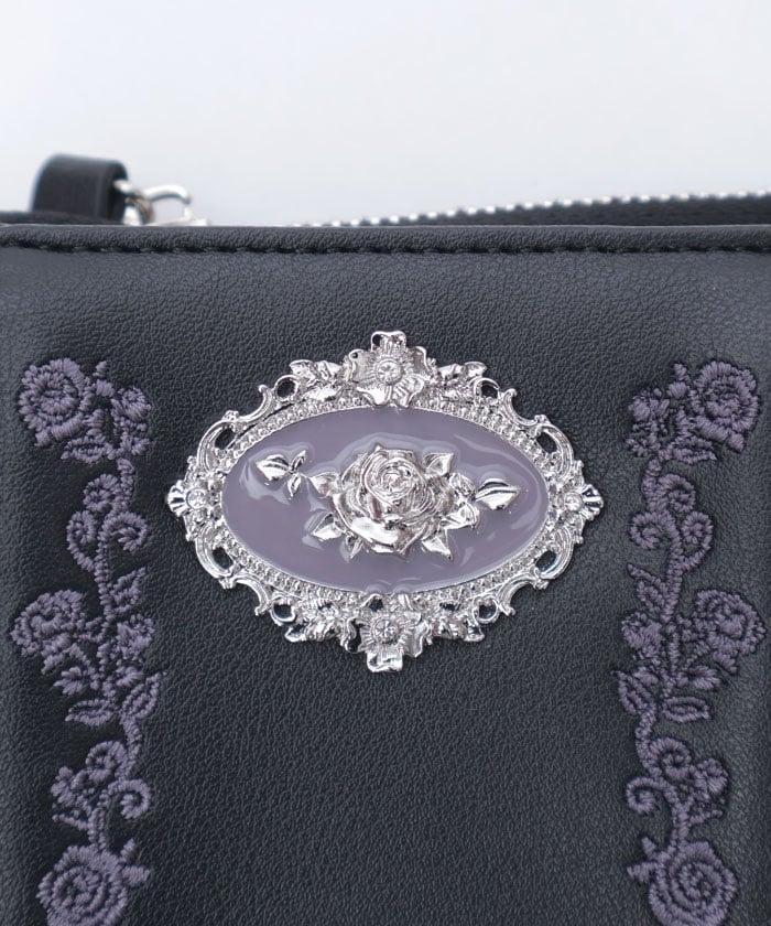 This mini wallet features elegant rose embroidery.