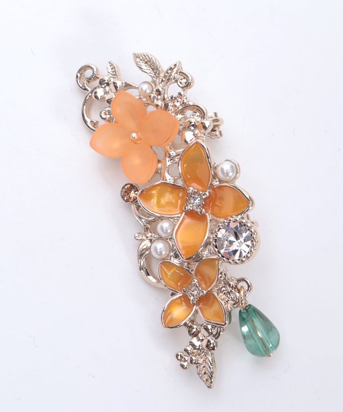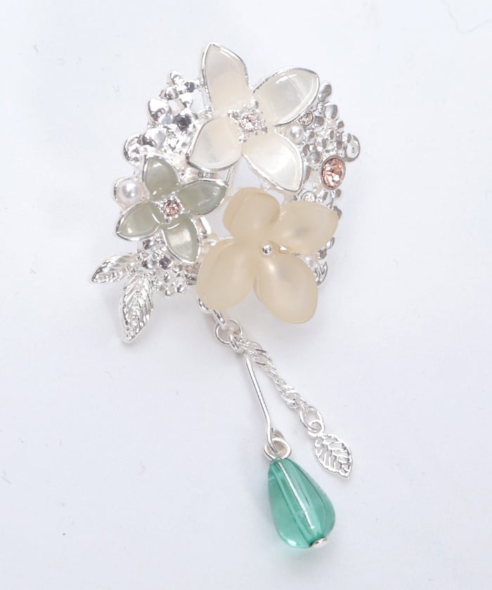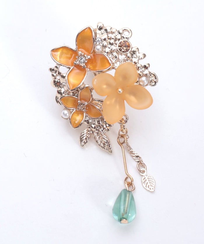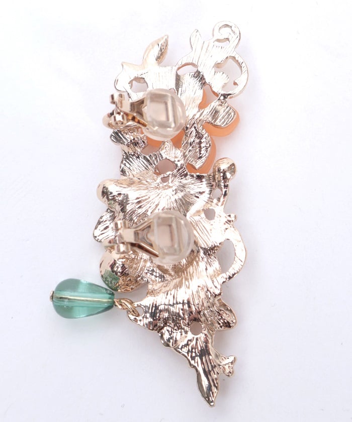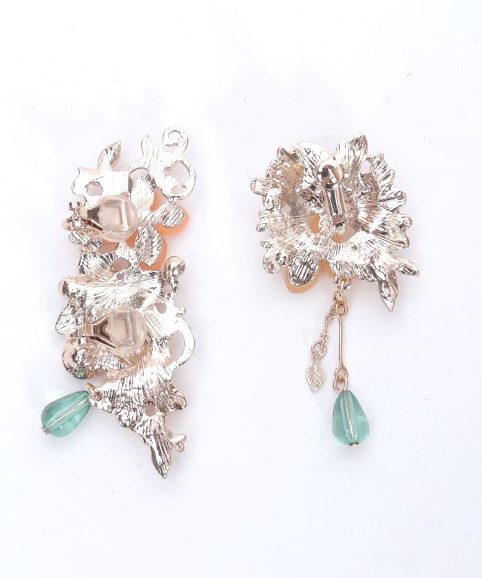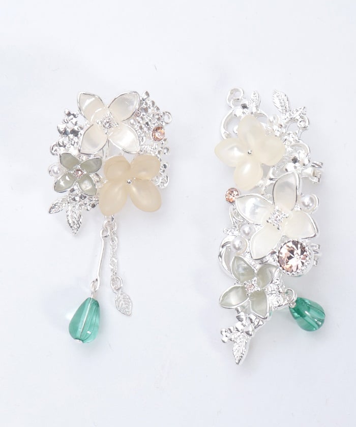 An earring & earcuff set featuring gentle and beautiful motifs of osmanthus (kinmokusei) and silver osmanthus (ginmokusei) flowers.