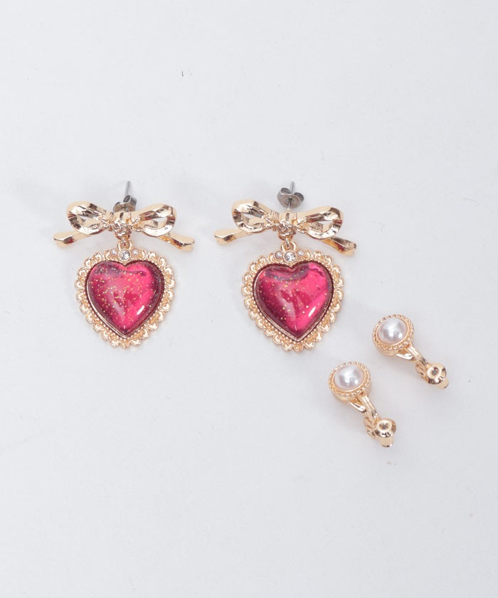 Heart-fluttering heart-motif earrings and pierced earrings.