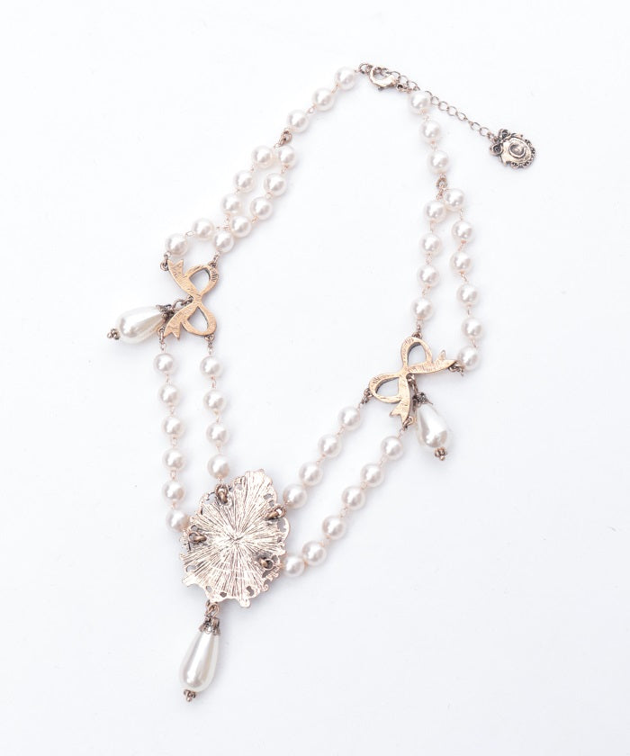 Designed with a short chain, this necklace matches easily with square necklines and stand collars.