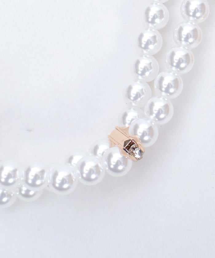 This pearl choker features an embedded motif, capturing the imagery of angel wings with original metal parts.