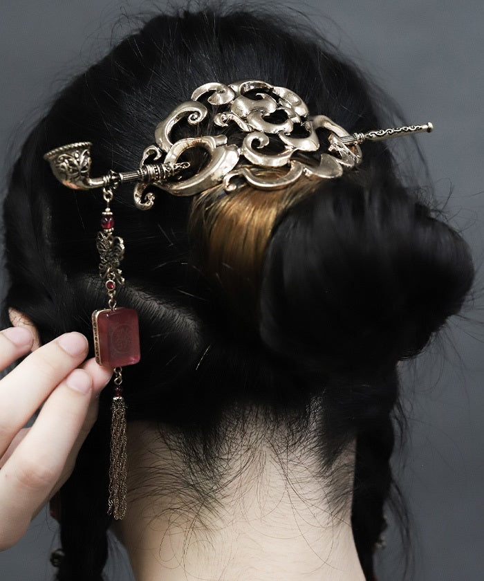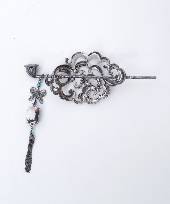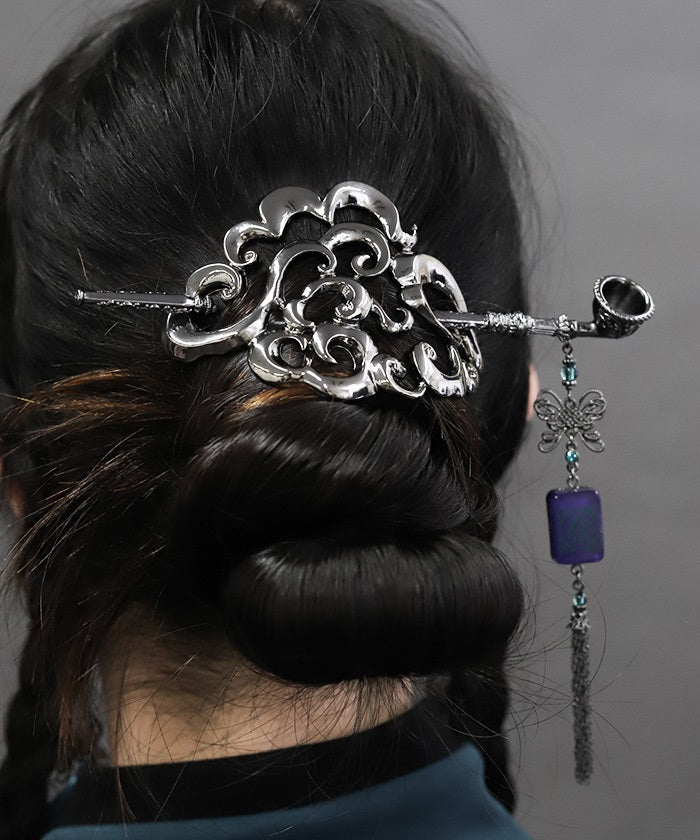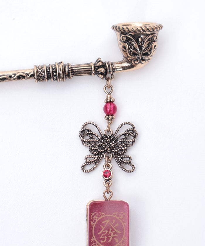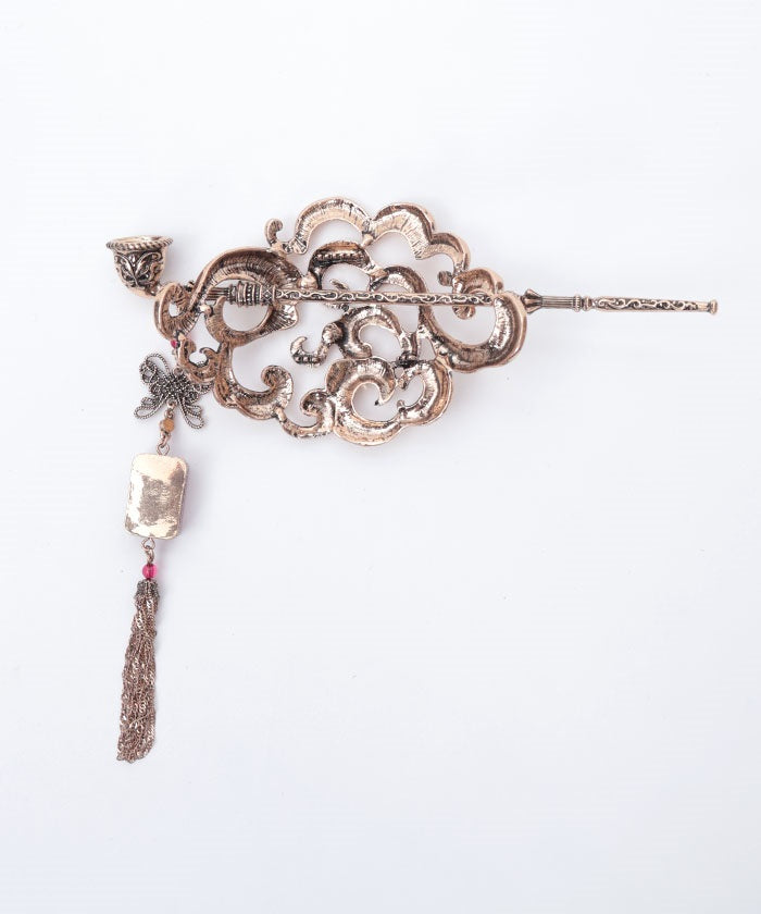 The hairpin section resembles an antique smoking pipe, while the base is shaped like the smoke coming out of the pipe.