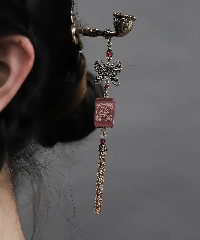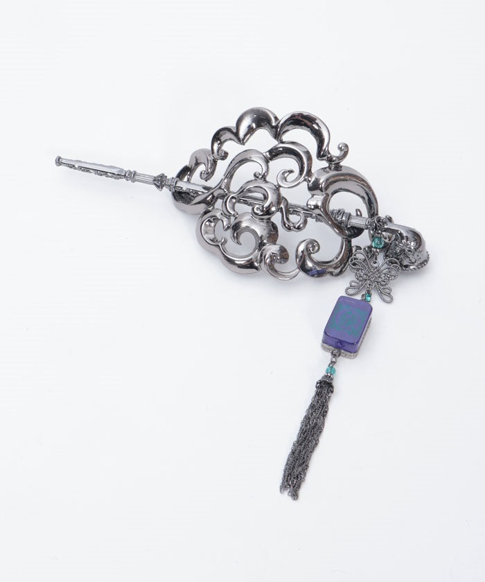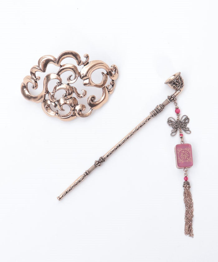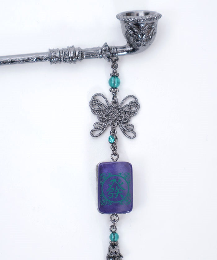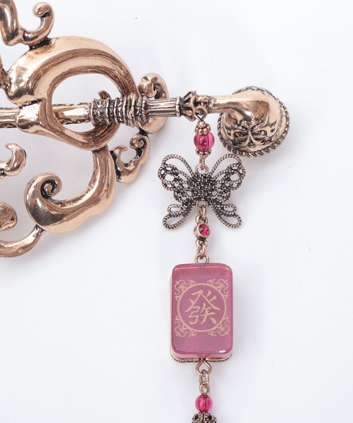 A majeste hair stick featuring eye-catching original mahjong tile-shaped motifs.