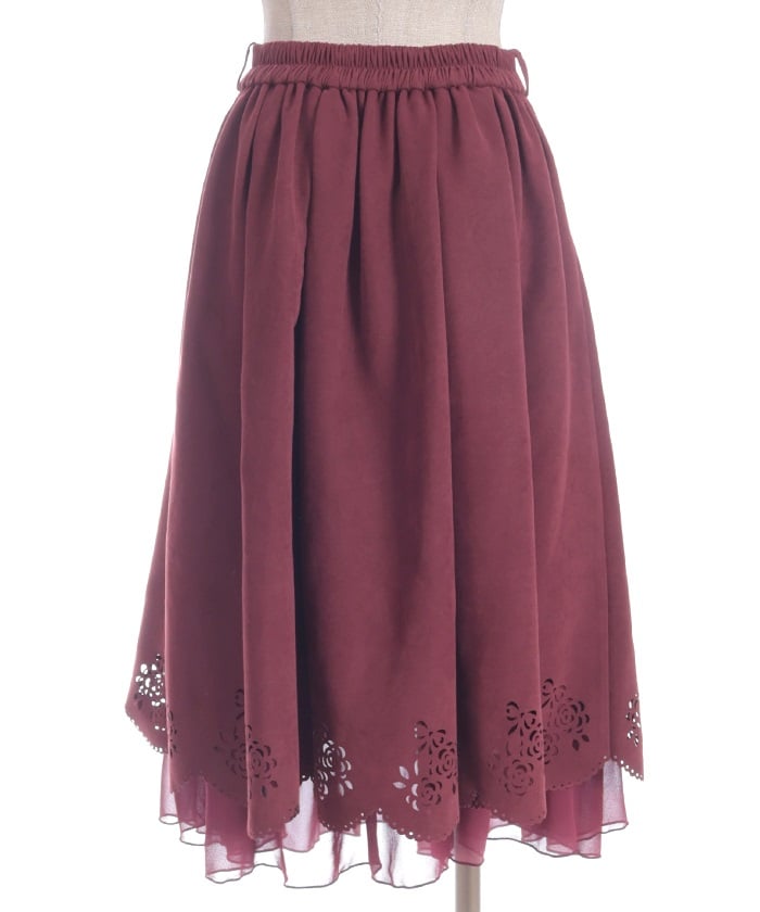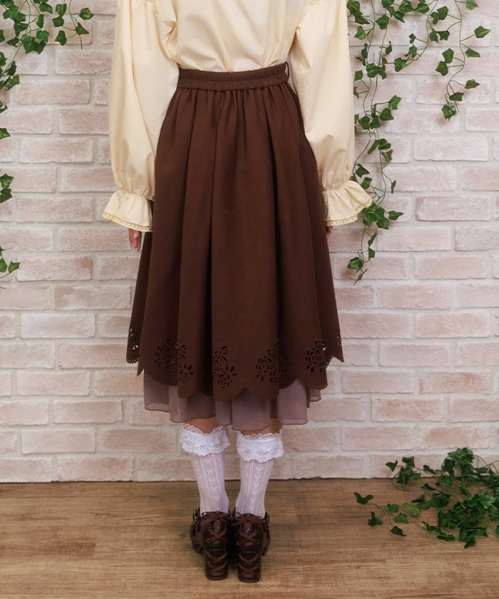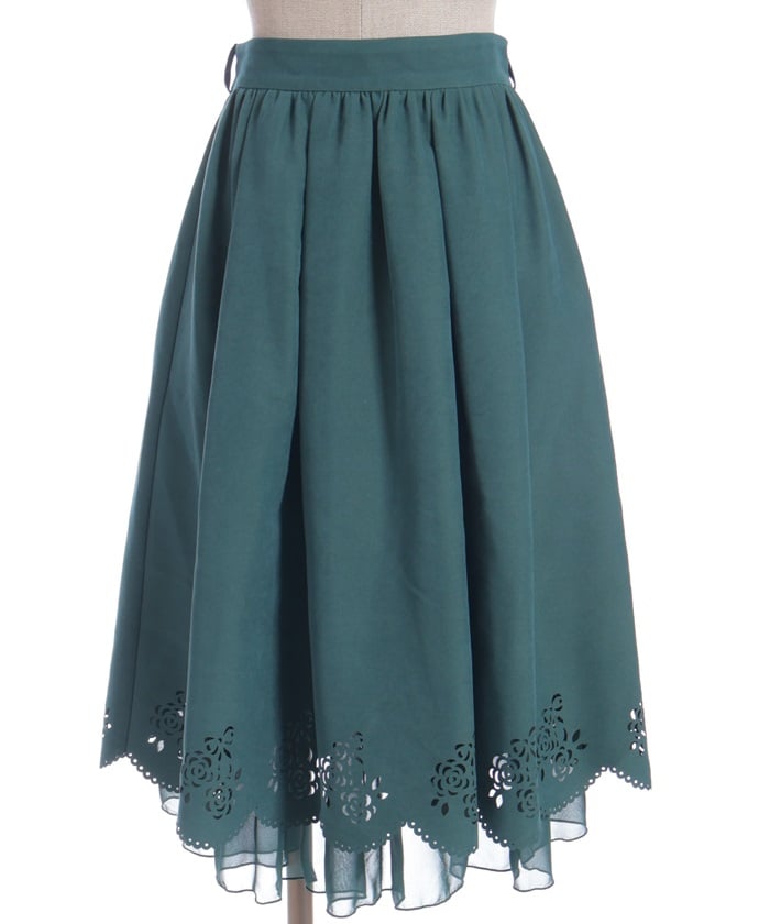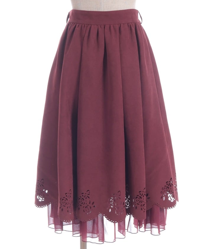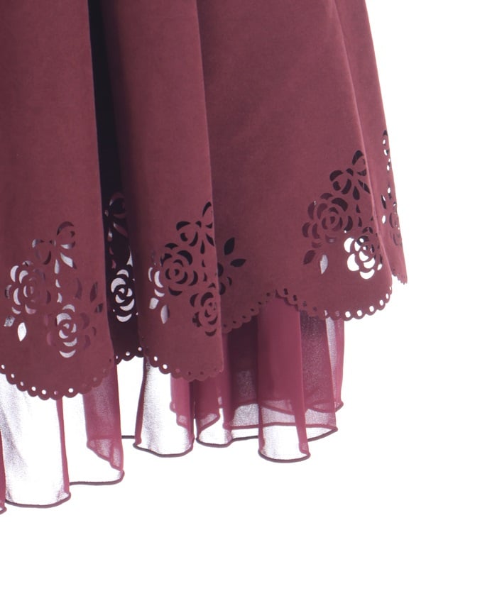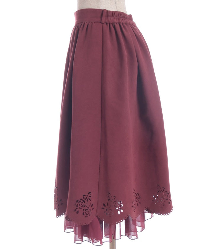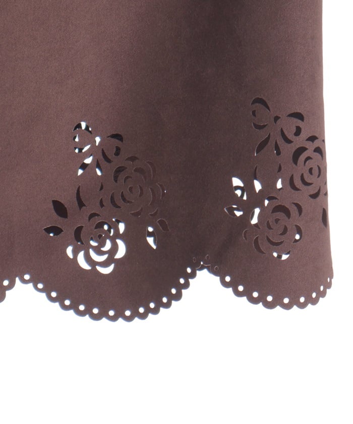 This girly skirt features a rose and ribbon cutout design around the hem.