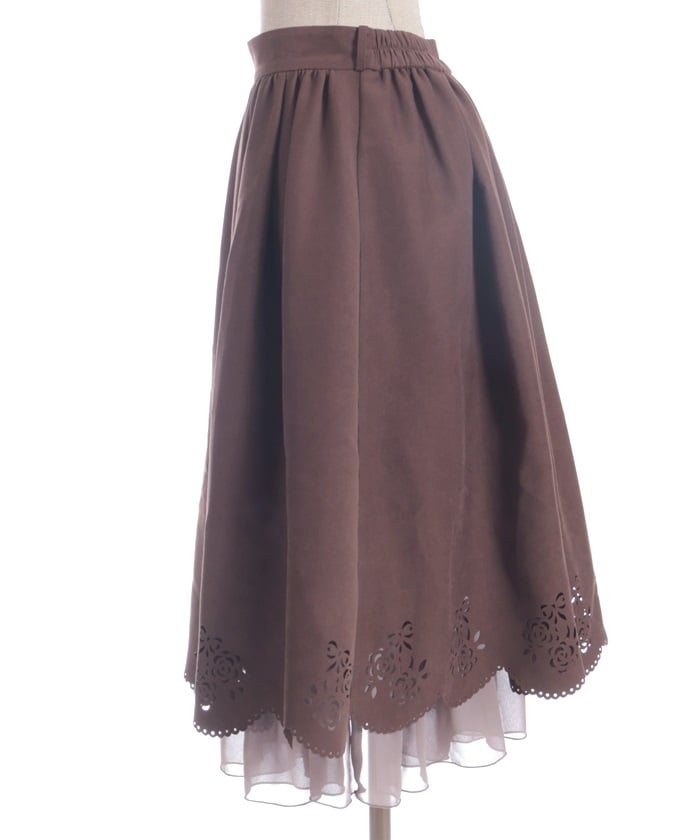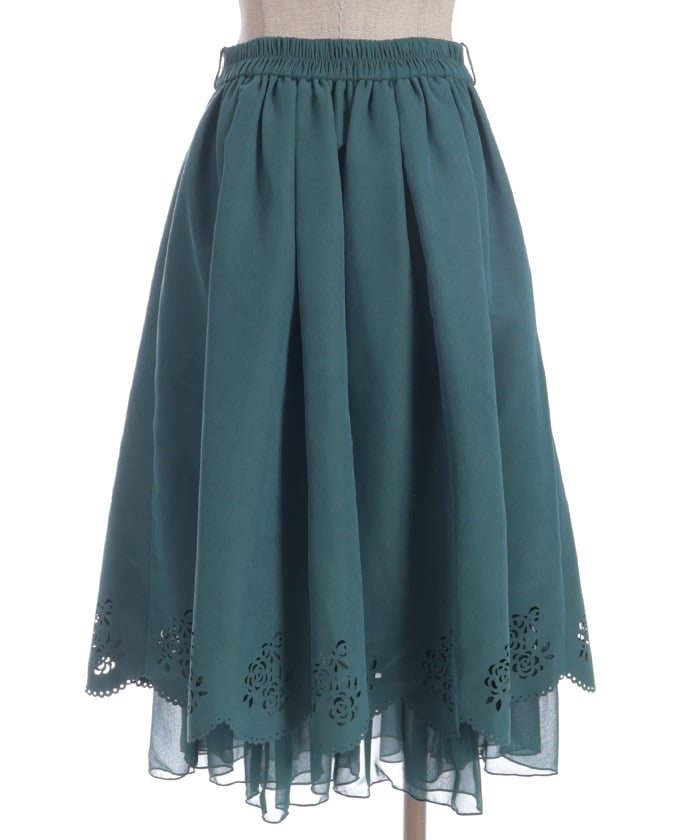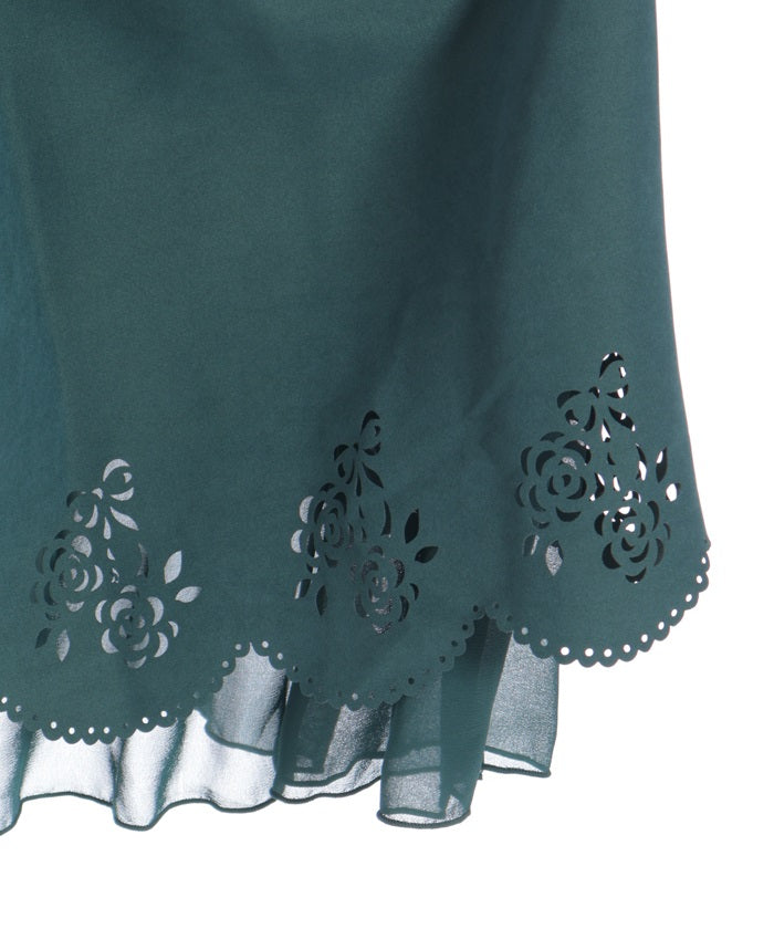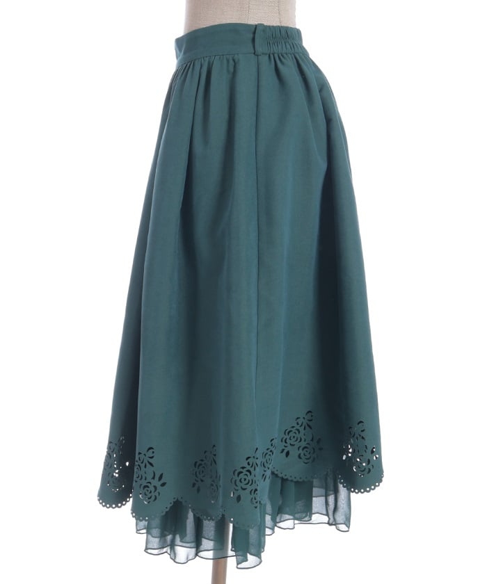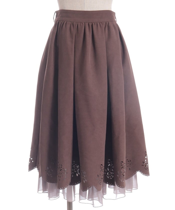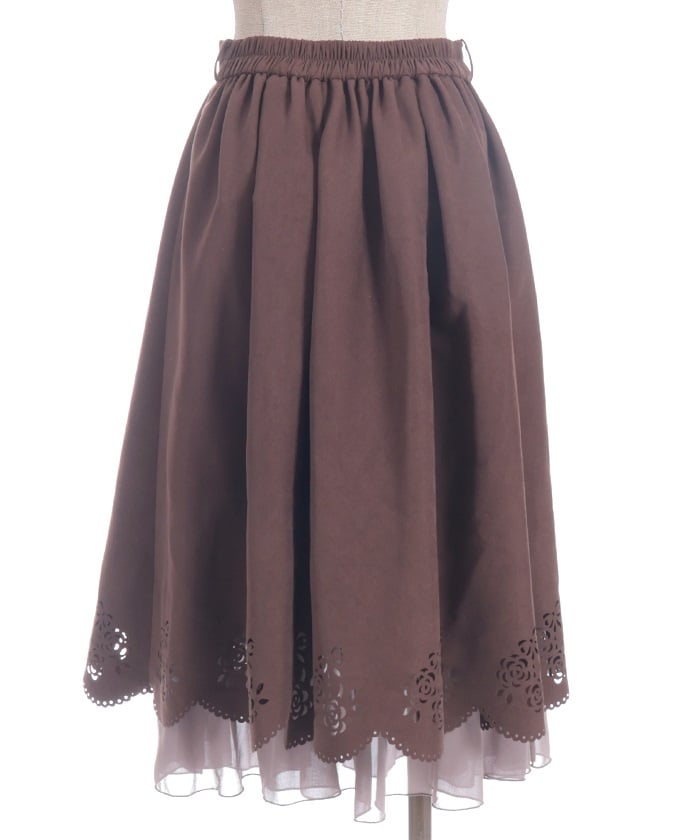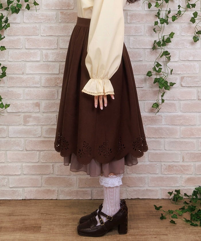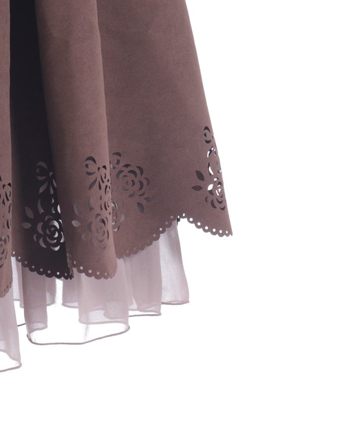 This girly skirt features a rose and ribbon cutout design around the hem.