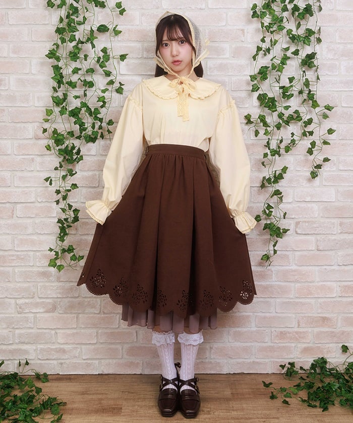A midi-length skirt with a girly cutout design.